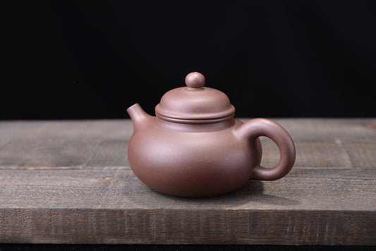 全手工原礦粗砂朱泥高虛扁紫砂壺「20250827每日特價」