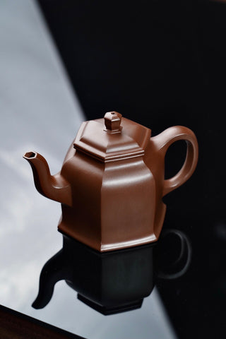 但是,那時老吳的壺都走高端路線,我一直沒法下決心花近千大洋買一個壺!直到老吳在微博上抽獎,送了我一個紫泥仿古,我才用上真正的紫砂壺!