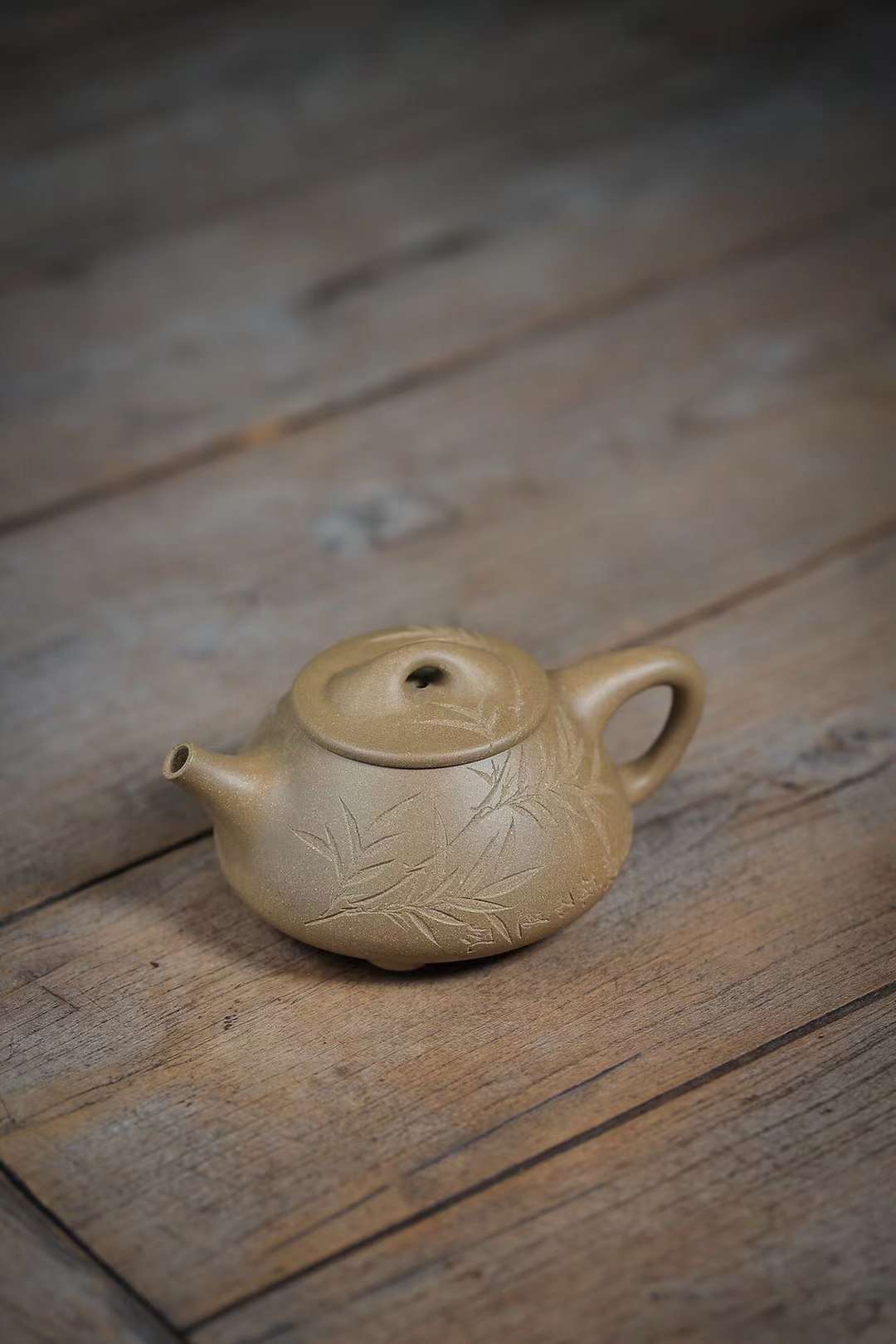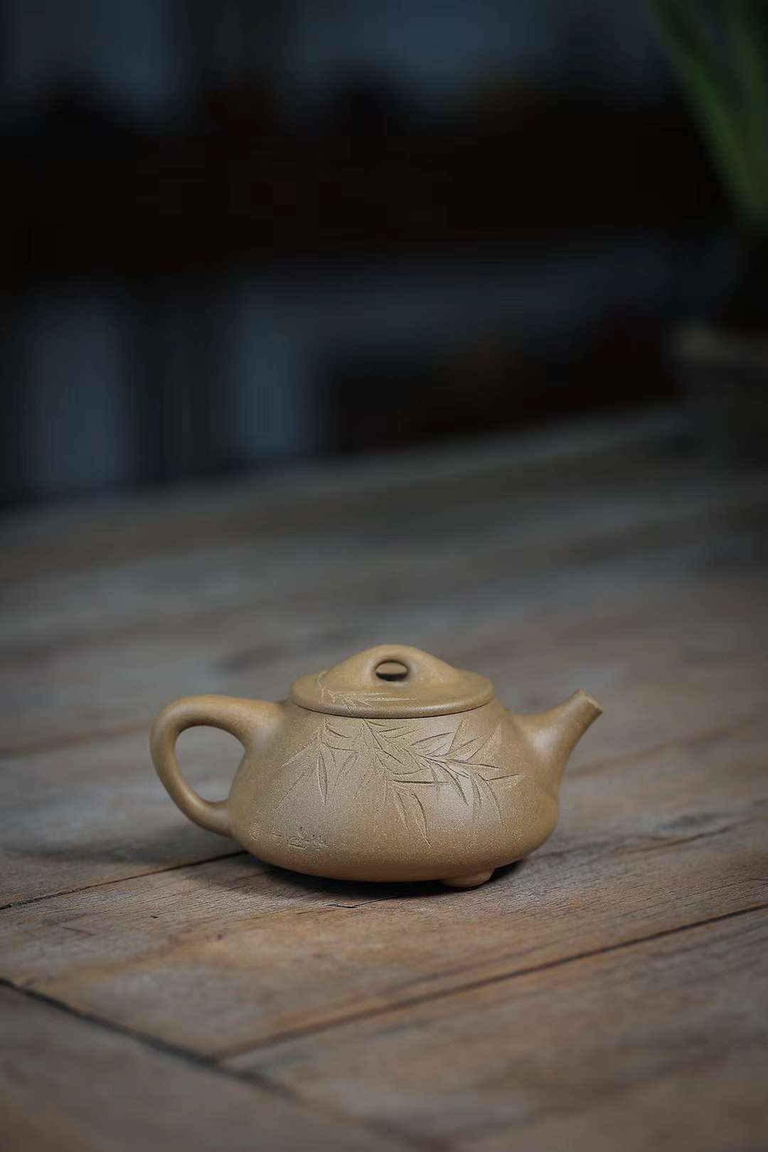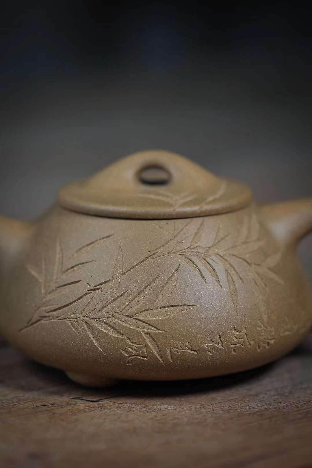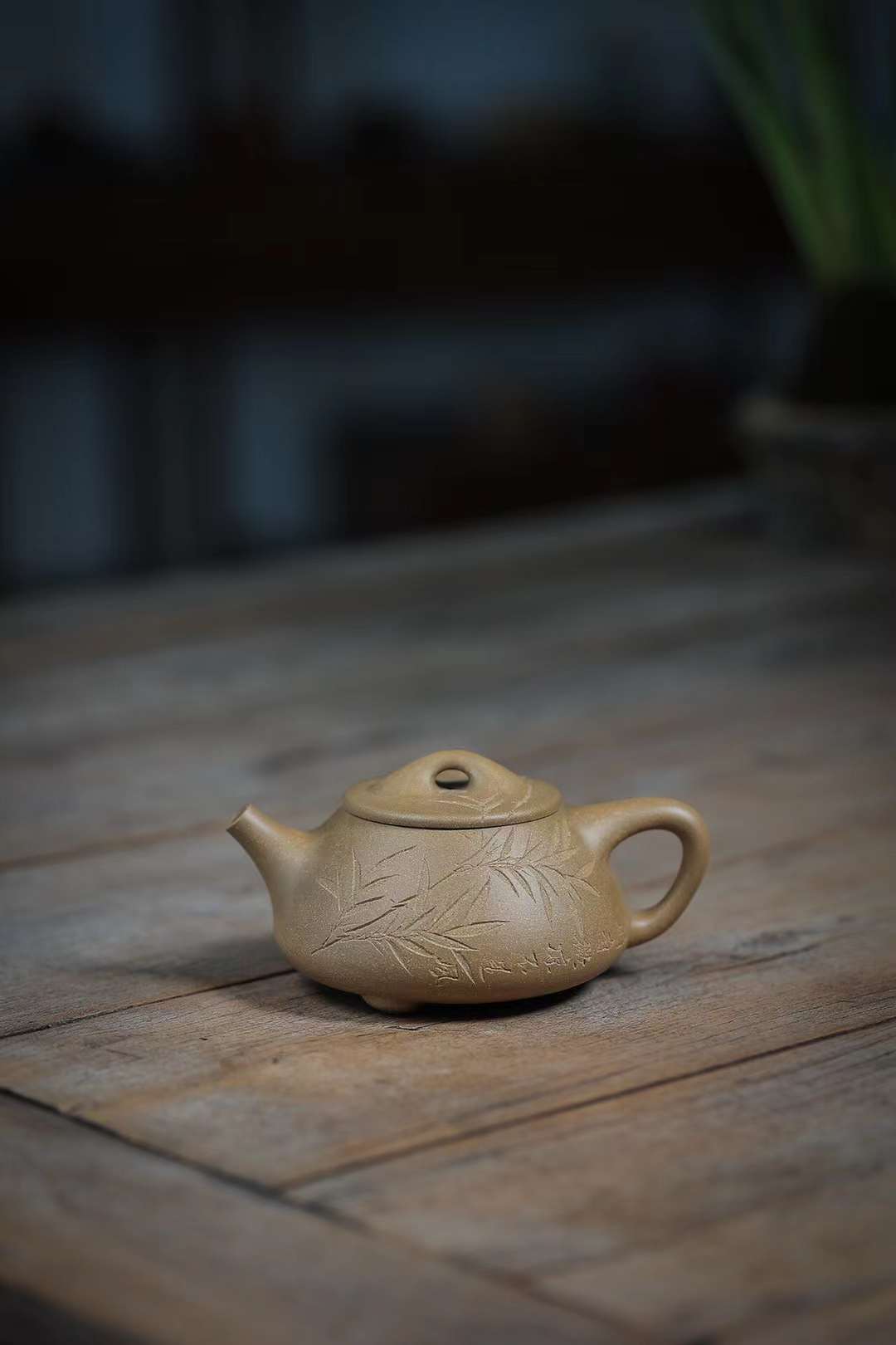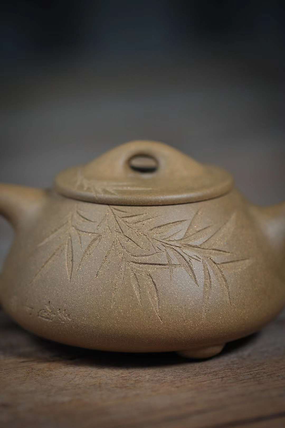 ‎ ‎The work of Mr. Lianghua, an old artist from the No. 1 Zisha Factory, the body of the pot is also straight and straight, showing a simple and generous demeanor. The whole body is engraved with bamboo leaves to set off the artistic conception of "the slight coolness is not the wind".