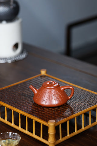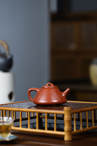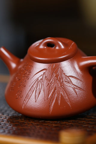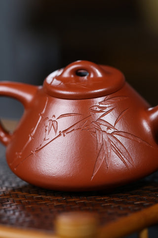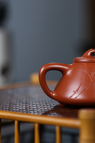 說來也好笑,在老吳這裡買的第一把把壺不是給自己的,而是幫一個朋友。那時候是老吳的淘寶店正式營業沒多久,並搞活動。朋友看我一天開口泥料閉口做工就請我幫他選一把壺,要求價格便宜的真紫砂,我一下就想到了老吳。壺到後專門跑去朋友家把玩一番,很是滿意。從此一試成主顧。這些年的慢慢學習,從只重視泥料到會看做工,從光素器到刻繪到花貨。石破天的壺我很放心,關卡(泥料)老吳給我把好了,我就可以把重心放在壺的型與工上了。
