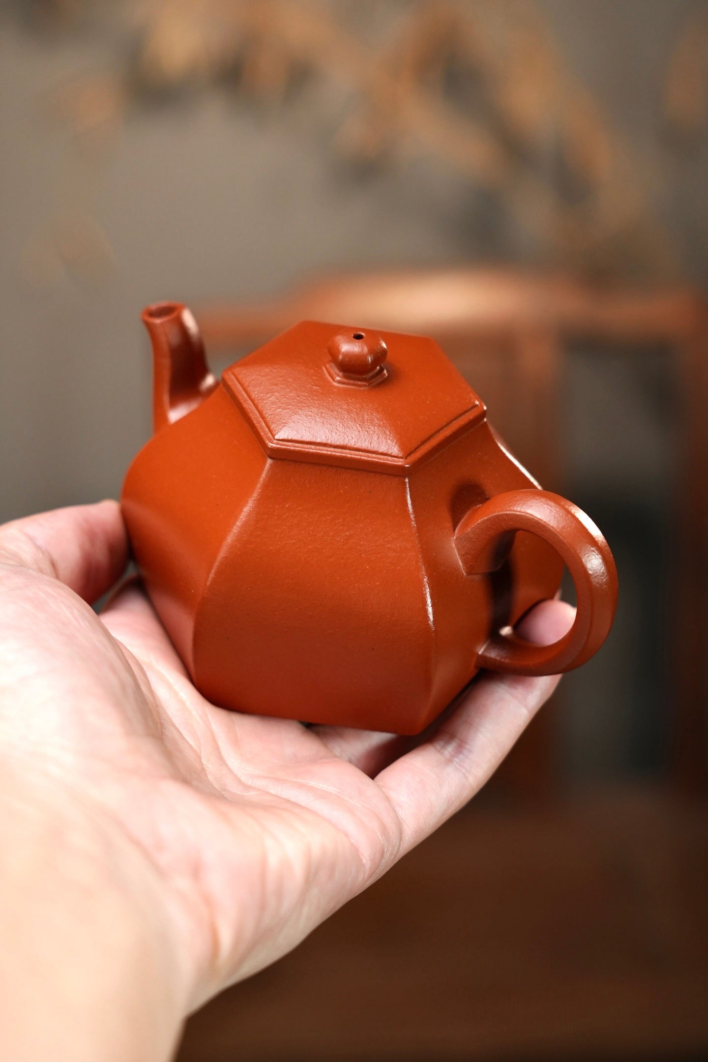 全手工原礦極品朱泥六方玲瓏紫砂壺「20251118每日特價」