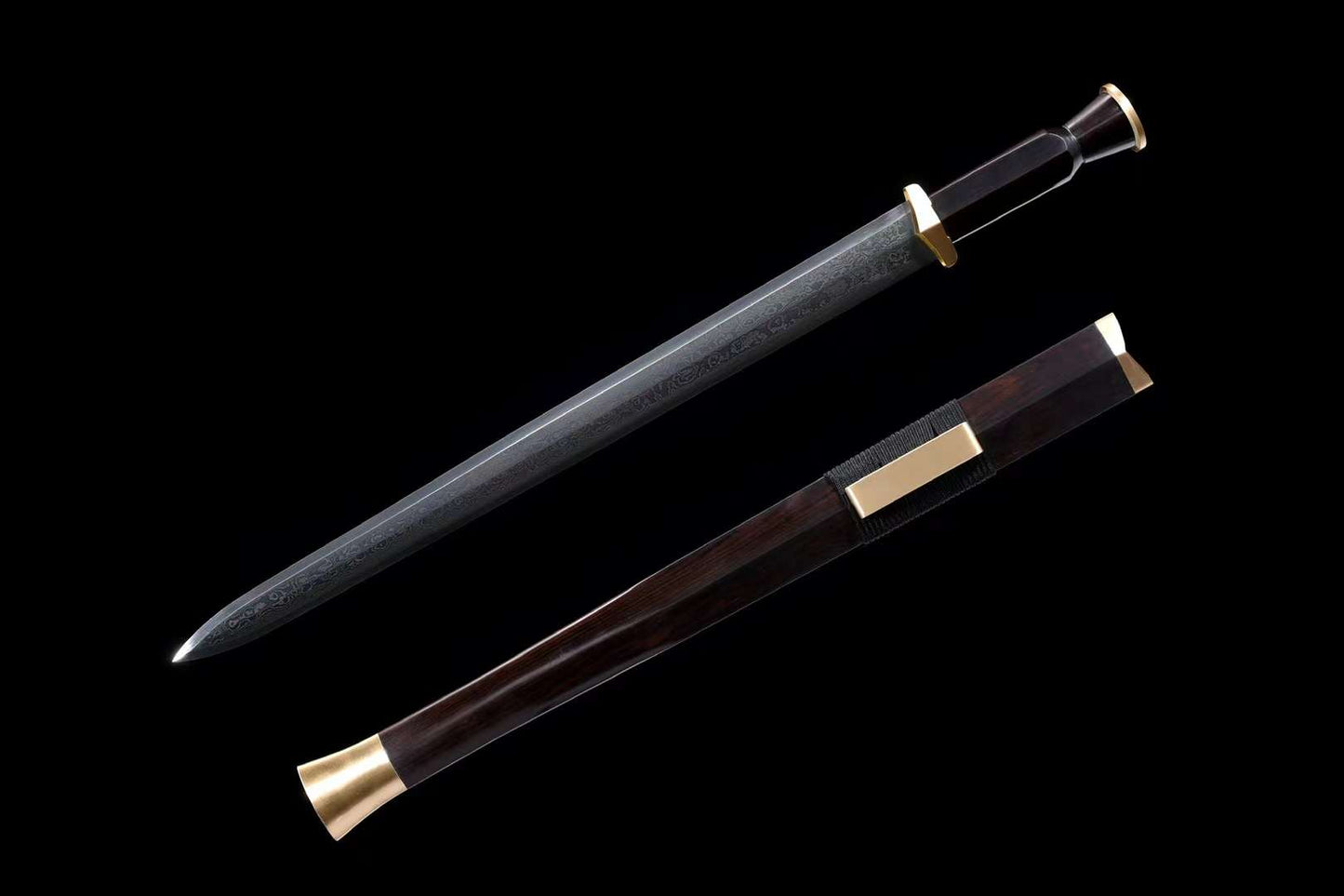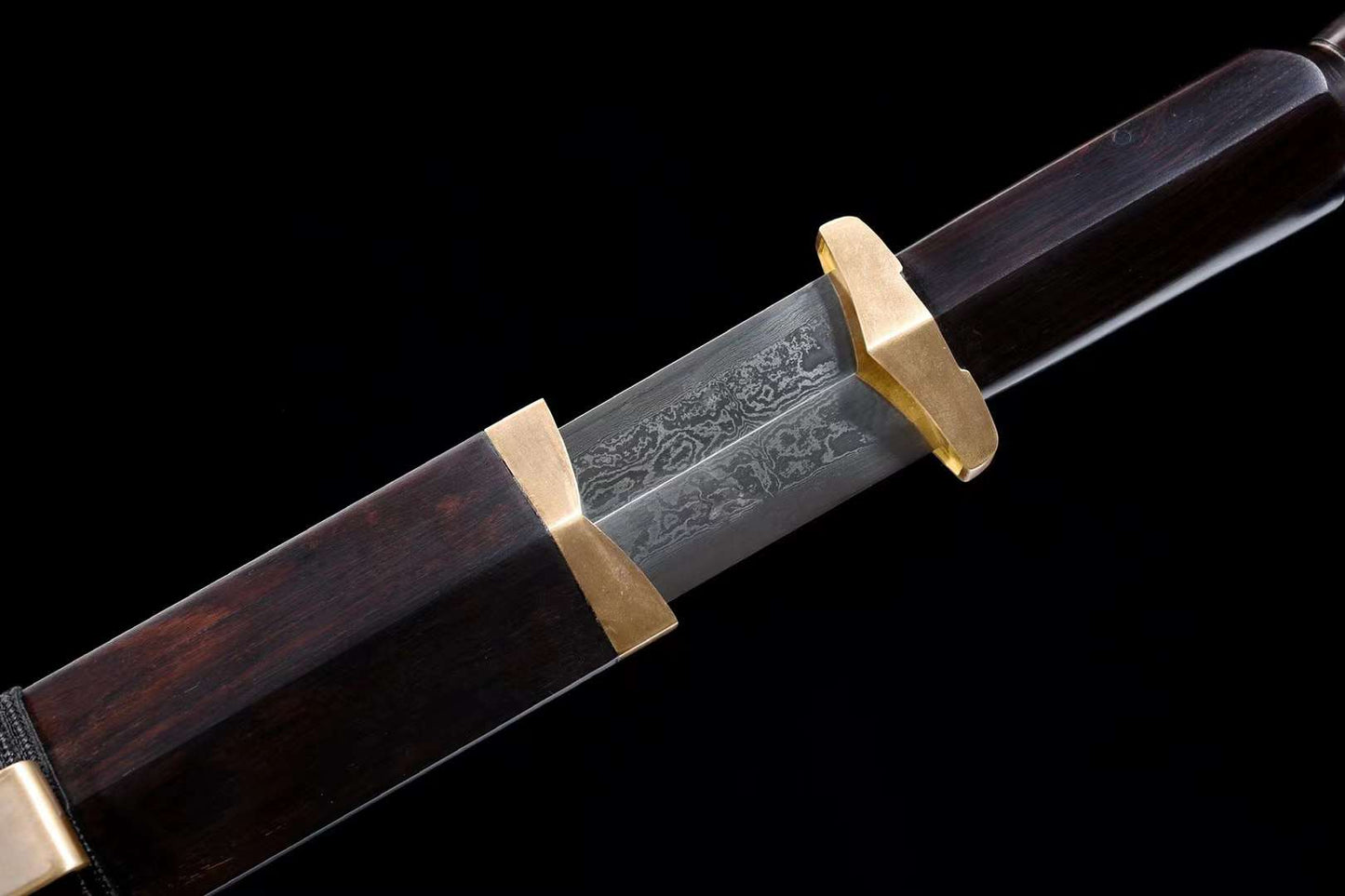 百炼花纹钢手工,上等黑檀,纯铜装硬度高可砍铁