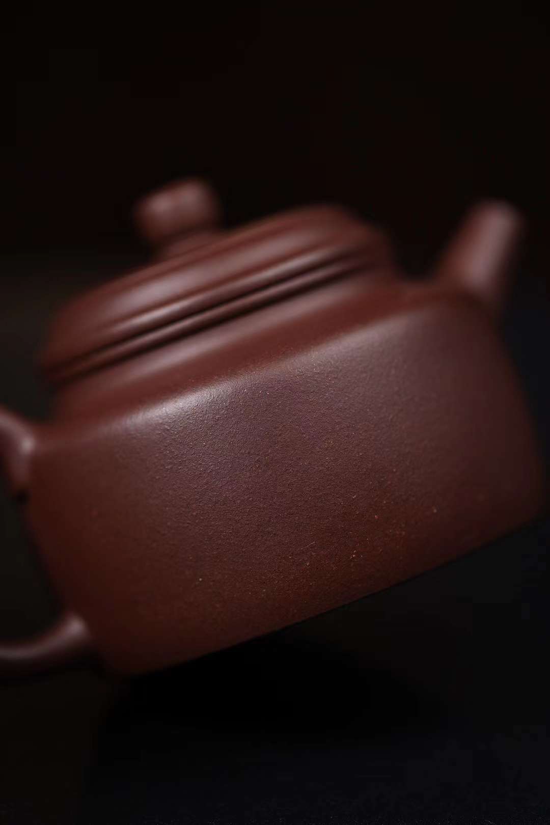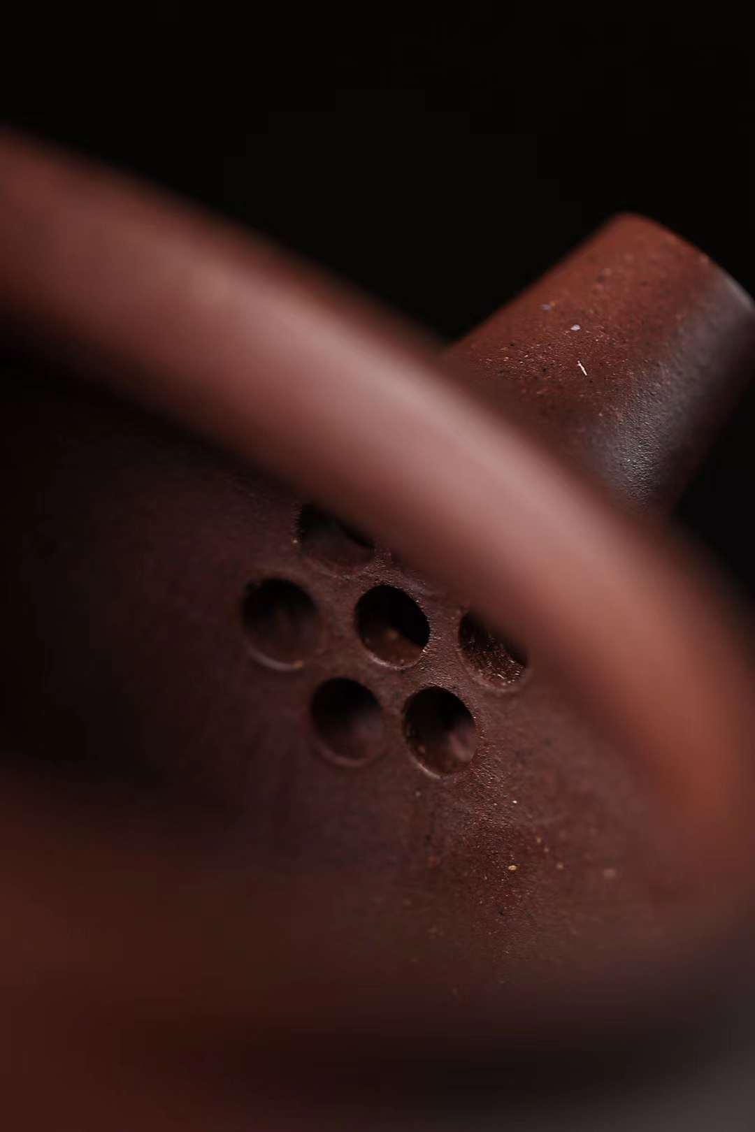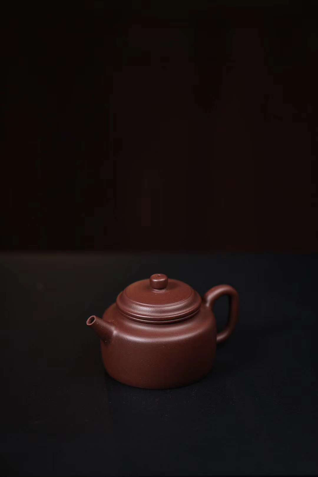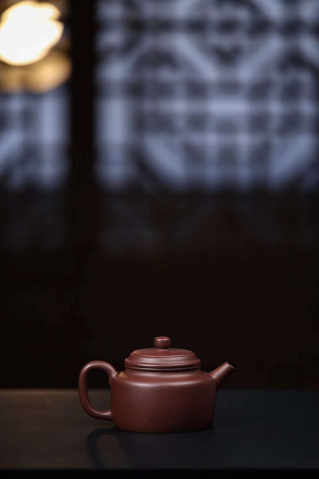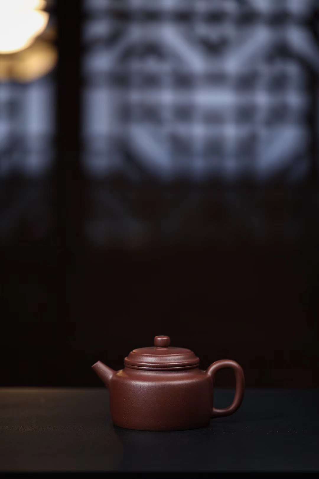 紫砂一厂老艺人周良华老师手制,壶口之上下圆线,像双唇轻抿,平和端庄、神态自若,不仅壶型周正,更有一种正直的气势蕴含其中。