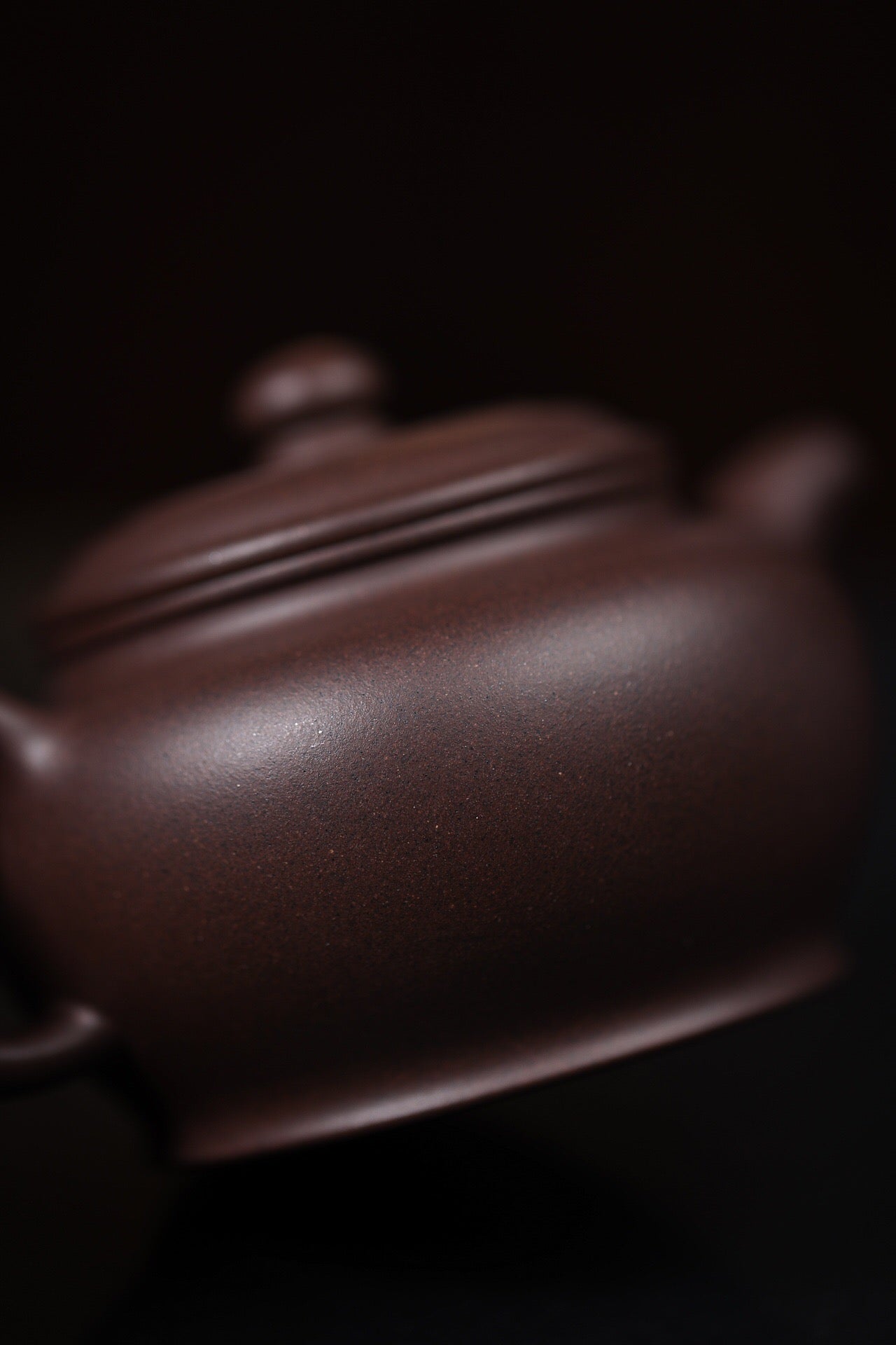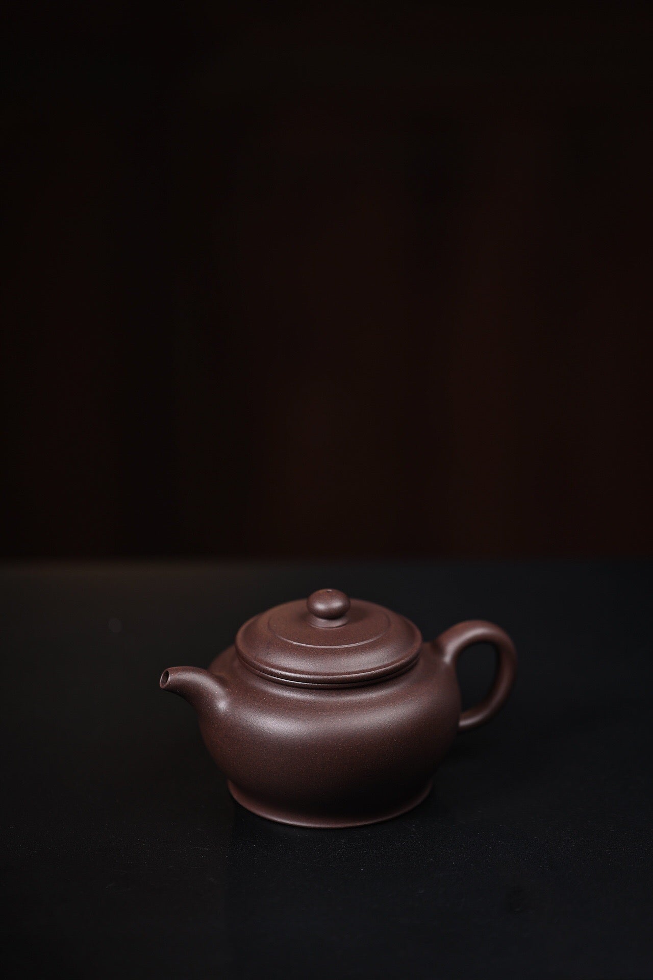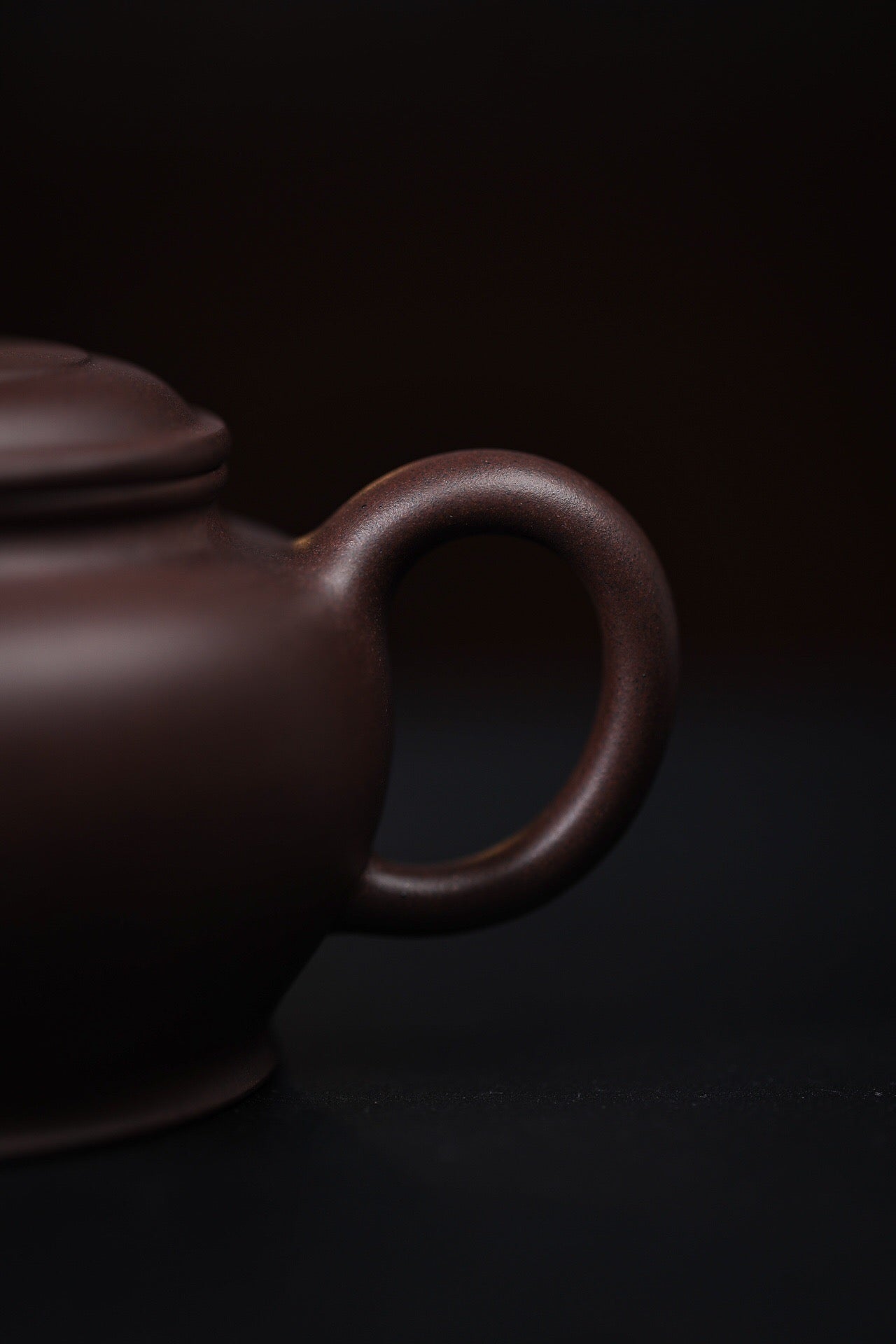 紫砂一厂老艺人周良华老师之作,在传统掇只上略加略加改变,整器壶身为扁球形,壶肩略平,同时也多了几分稳重质朴之气,造型优美且独具风格。