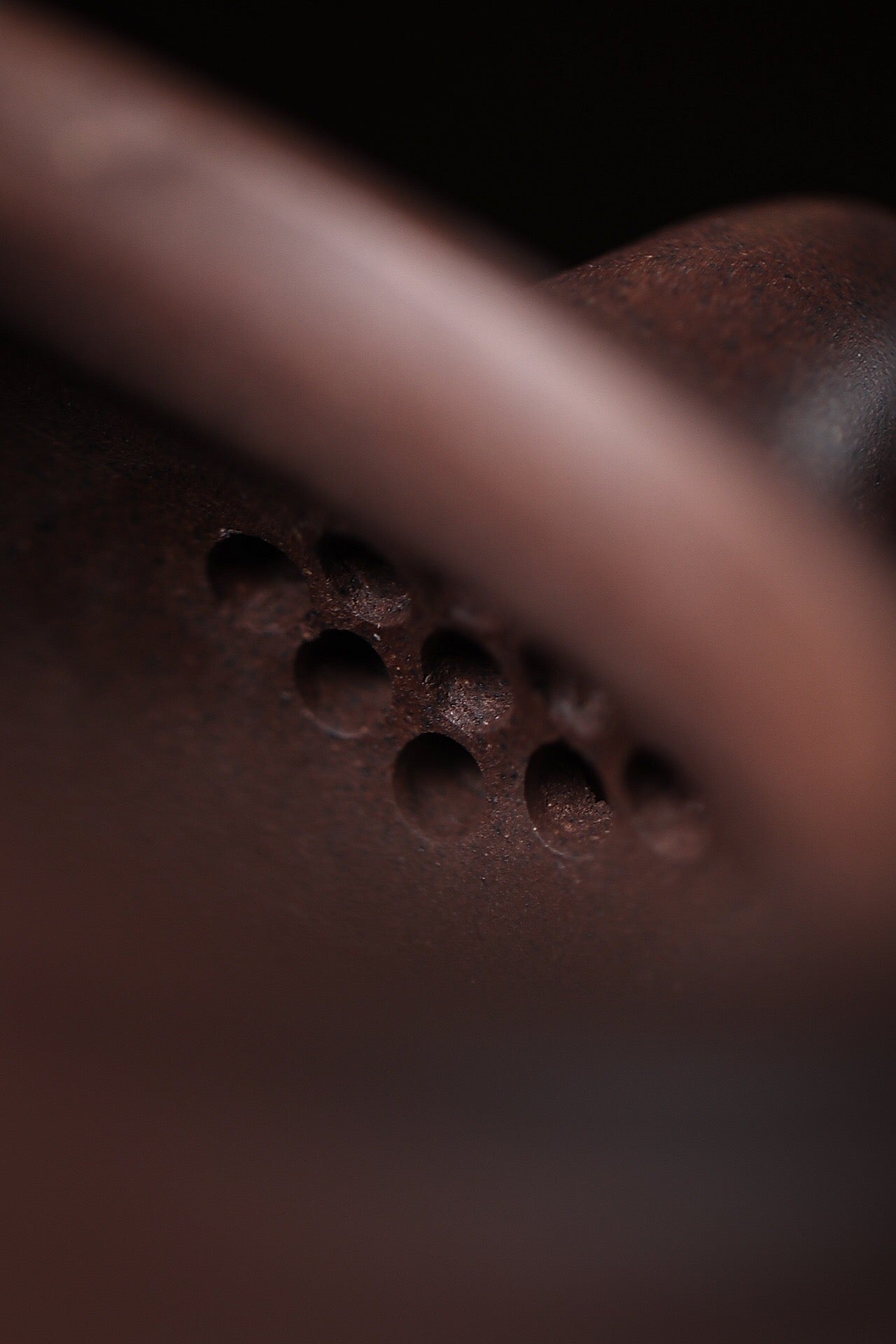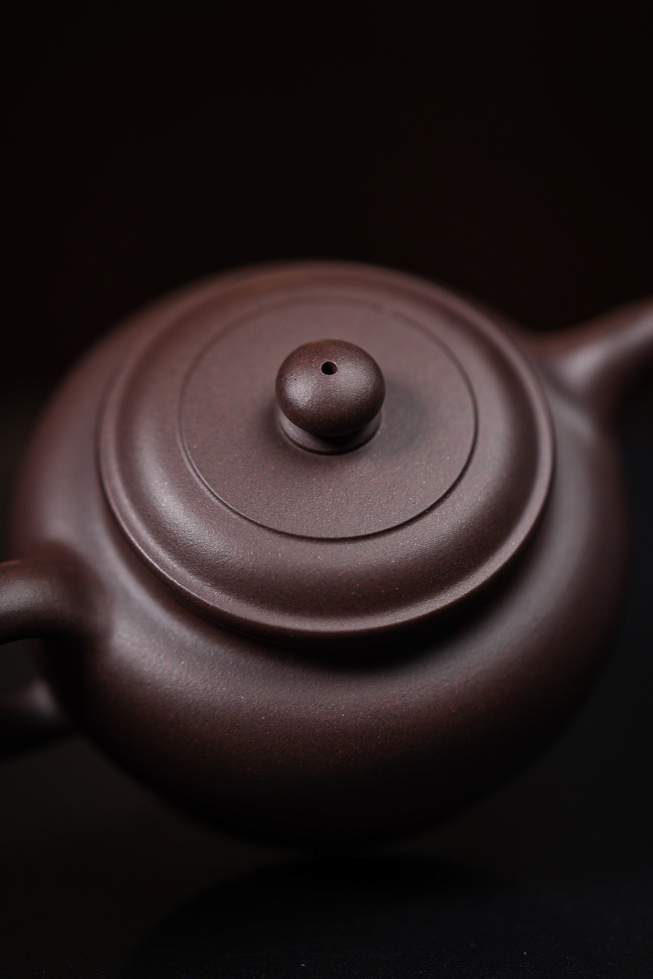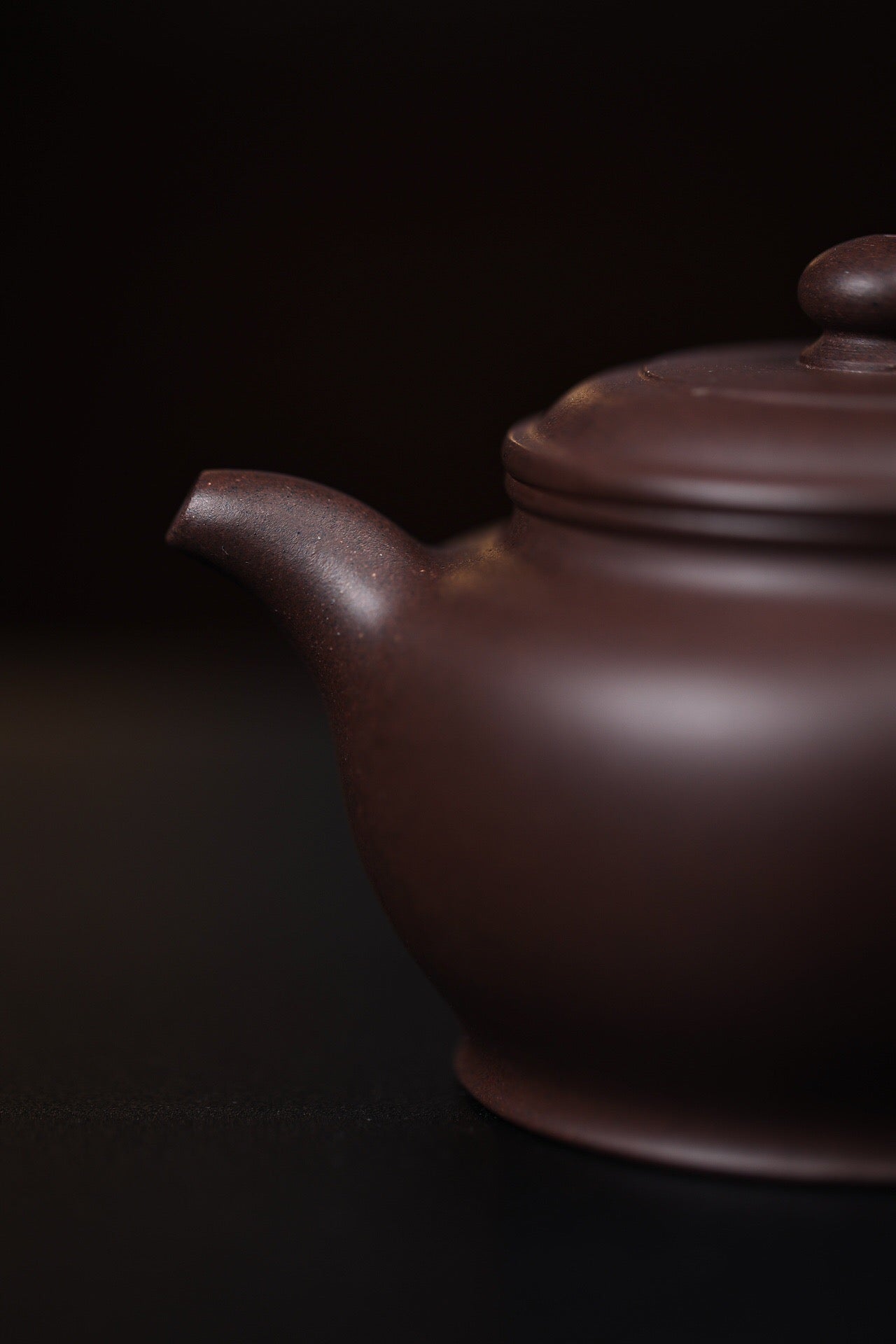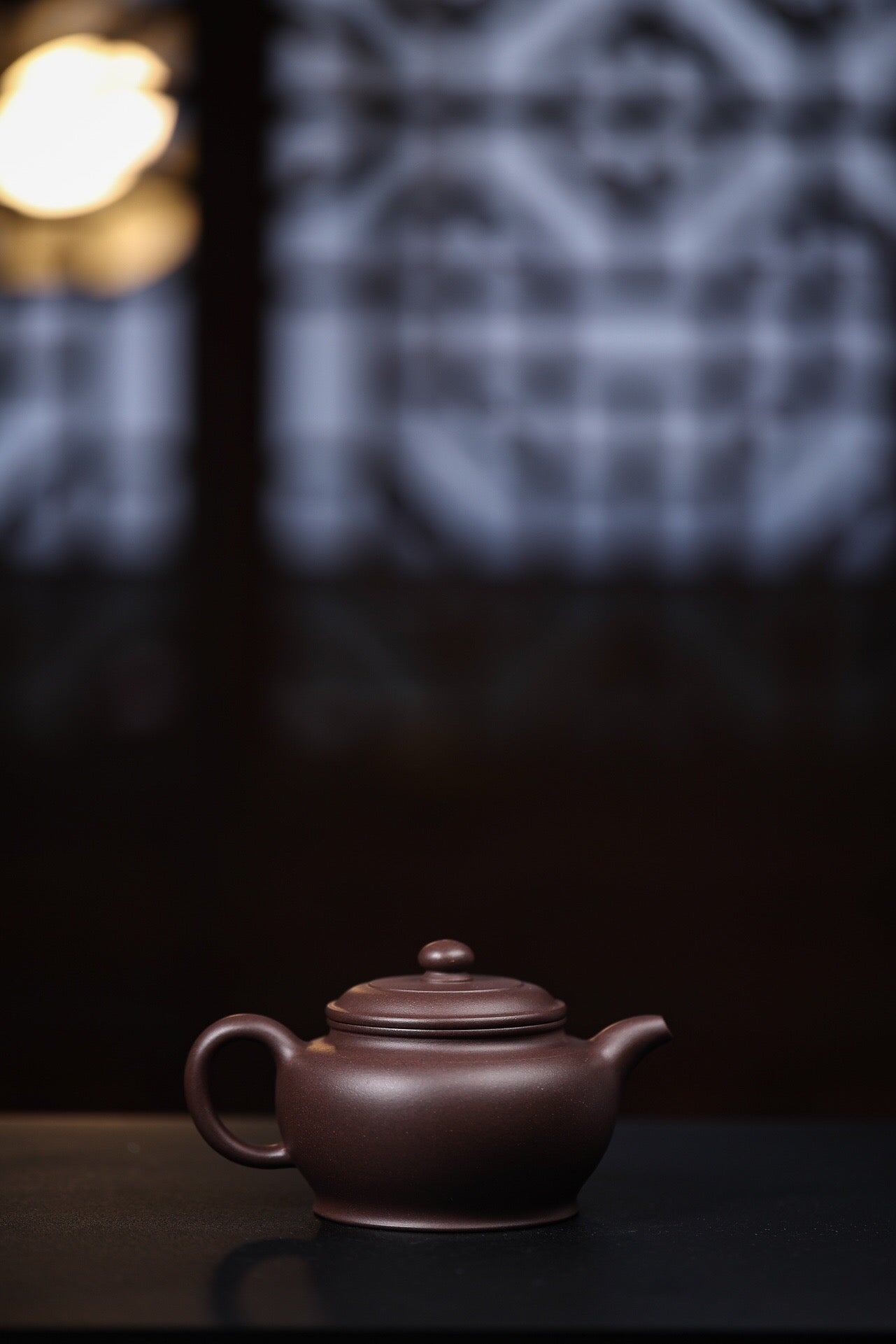 紫砂一厂老艺人周良华老师之作,在传统掇只上略加略加改变,整器壶身为扁球形,壶肩略平,同时也多了几分稳重质朴之气,造型优美且独具风格。