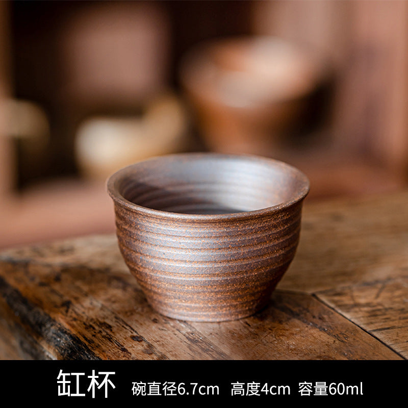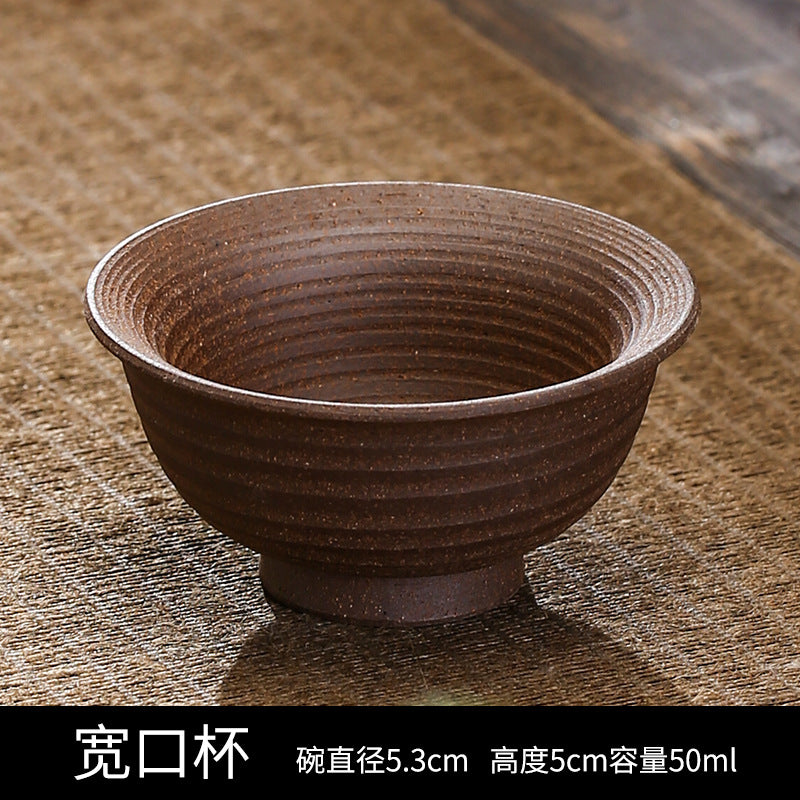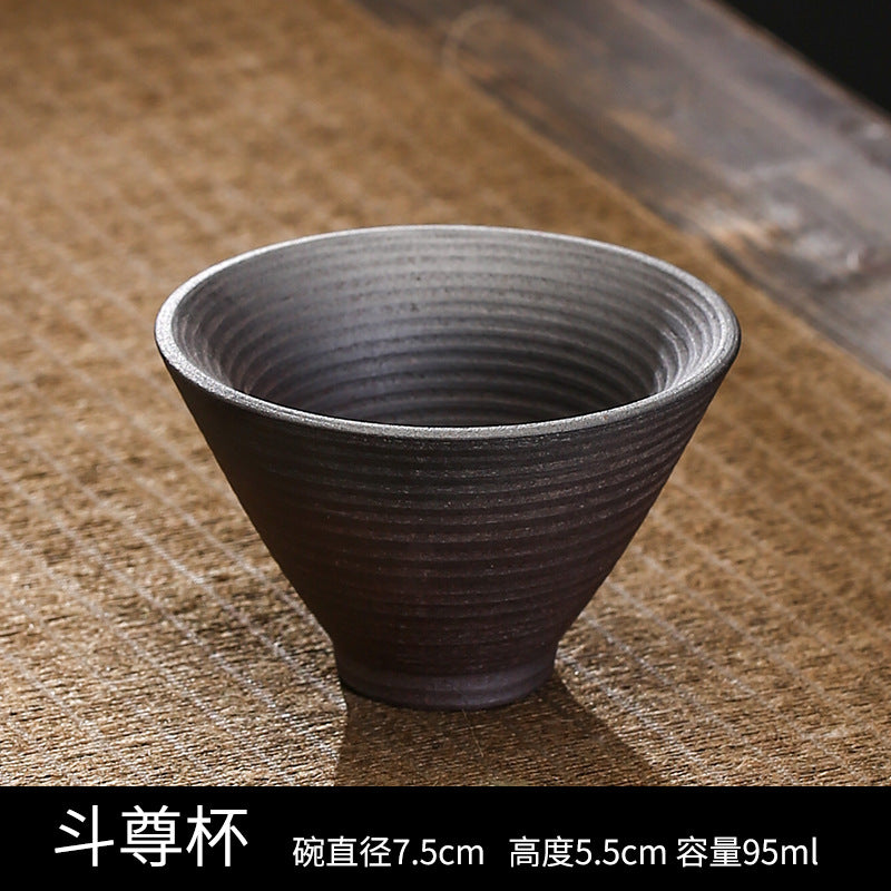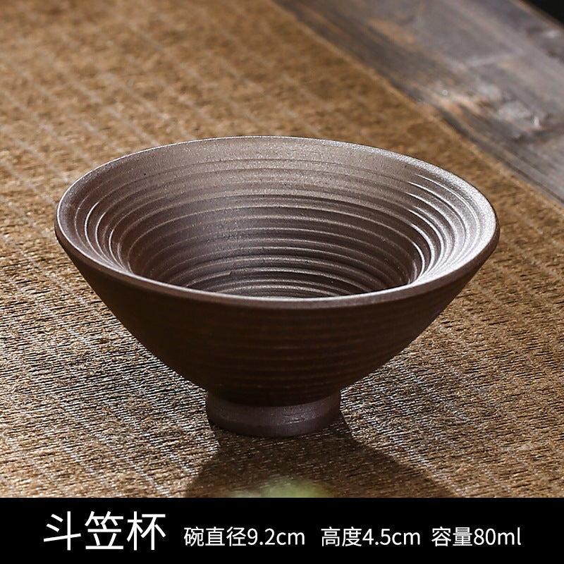 复古手工粗陶大茶杯、斗笠陶瓷主人杯、茶盏