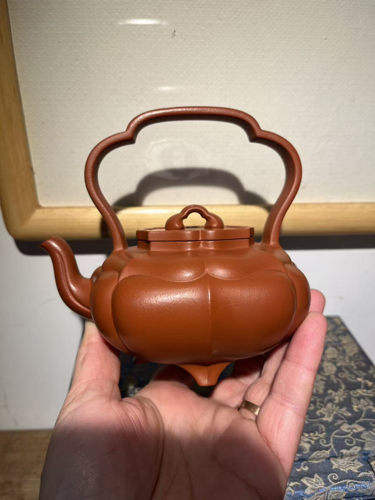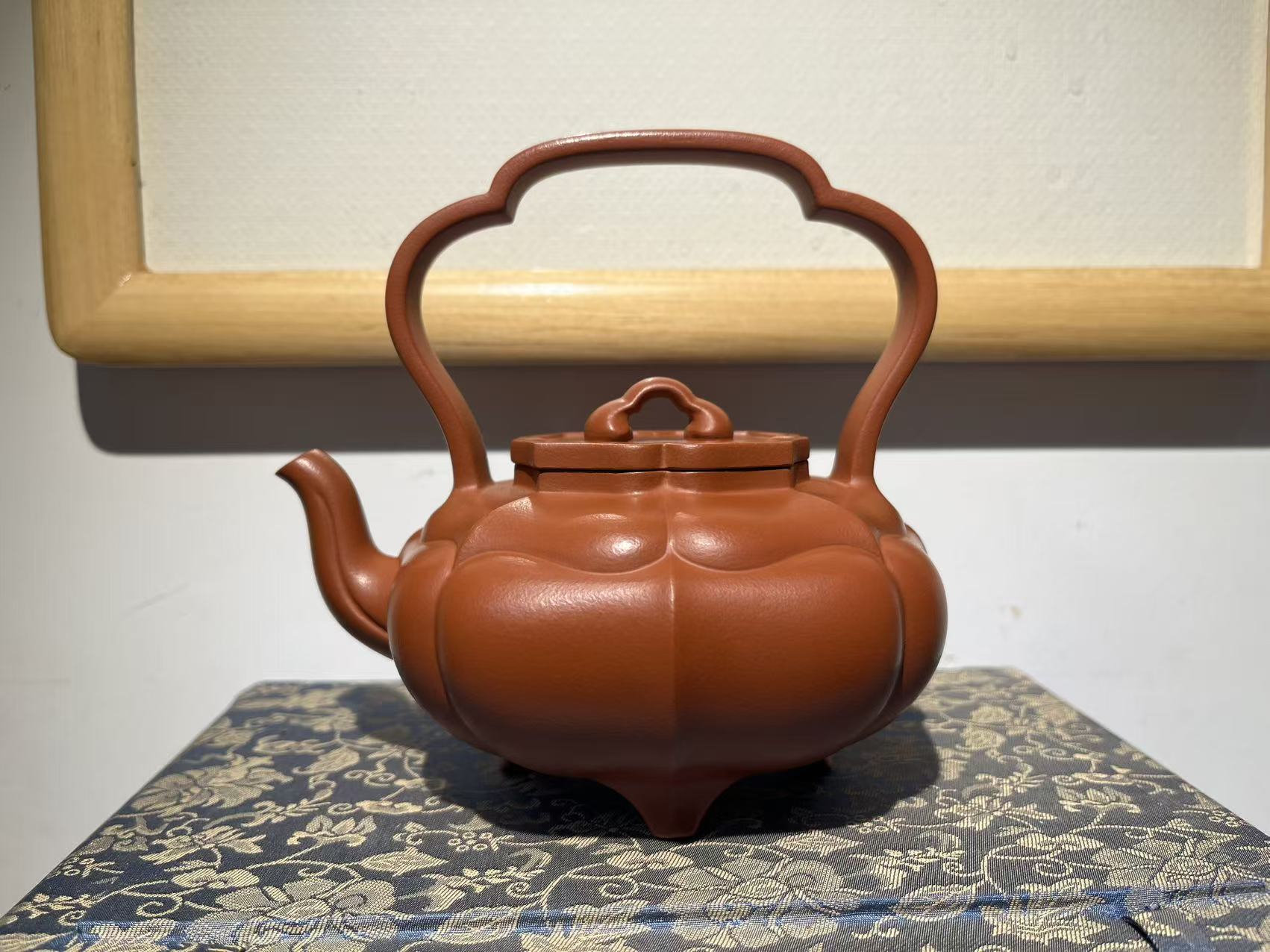 孤品原礦朱泥筋紋提梁紫砂壺「周春燕紫砂壺」
