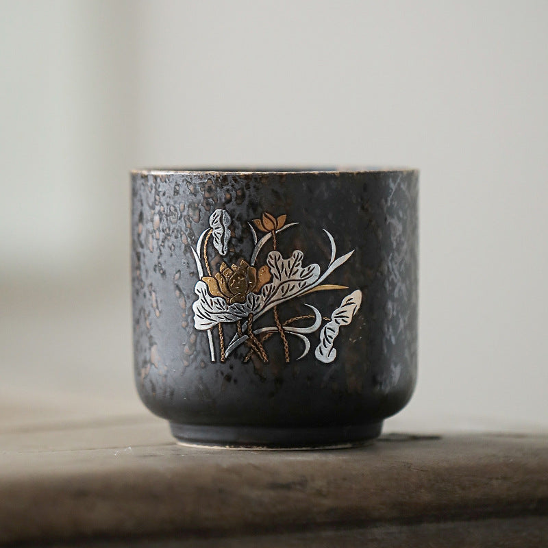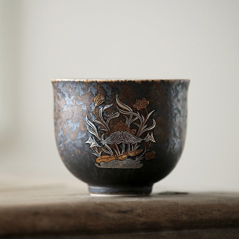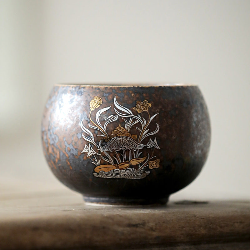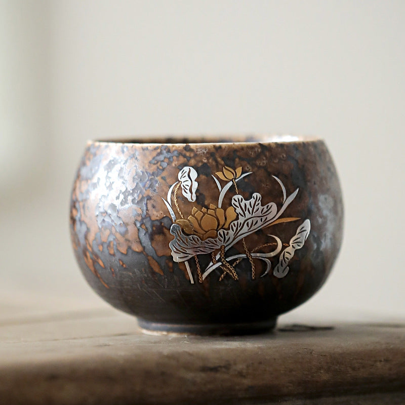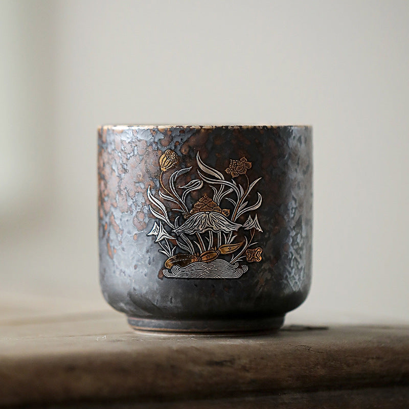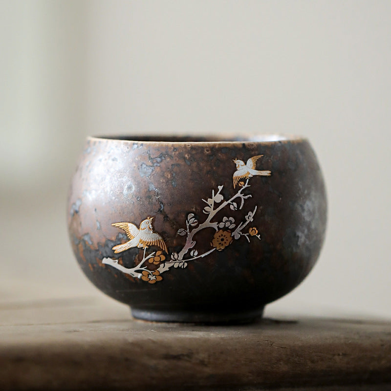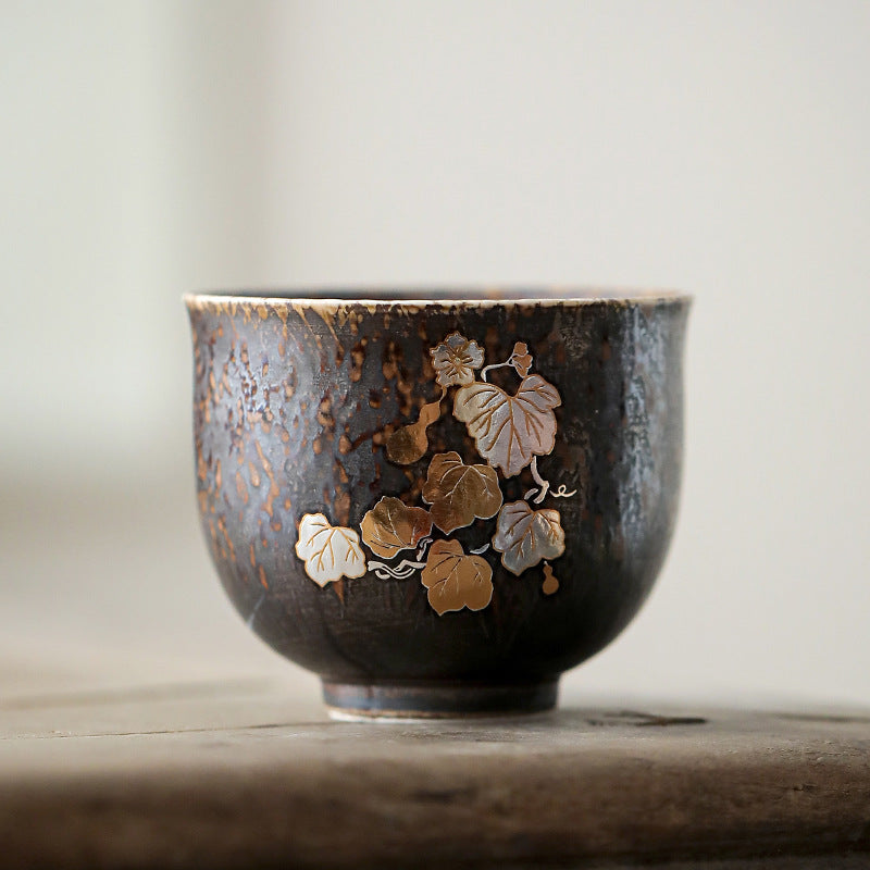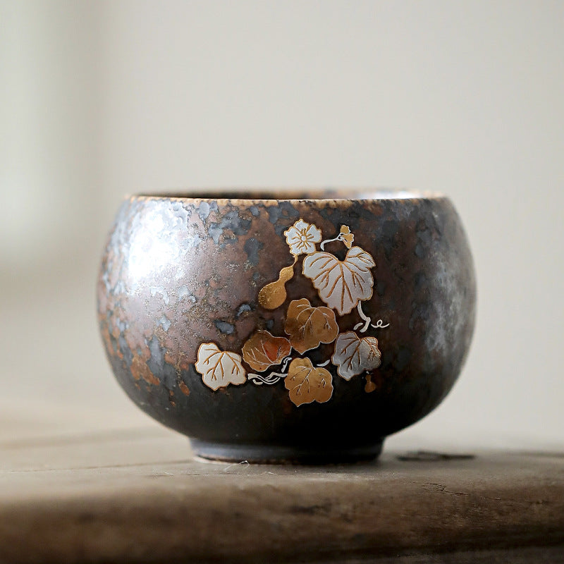 柴烧杯窑变主人杯、复古铁锈釉陶瓷茶碗茶盏杯、品茗杯