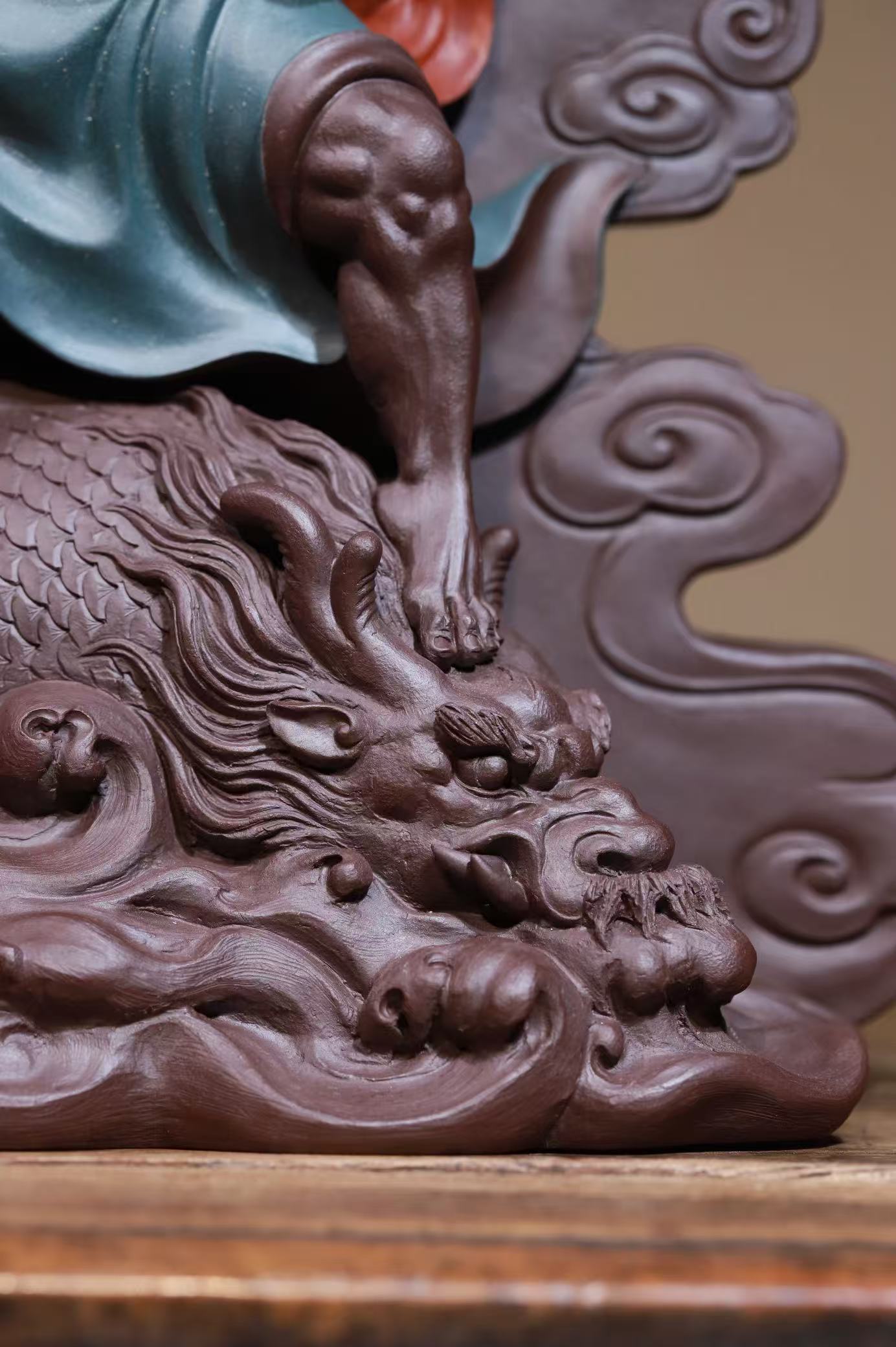 优惠价原礦紫泥粉段持經自在觀音紫砂擺件