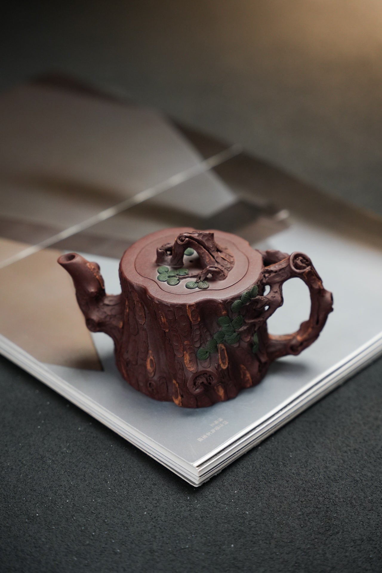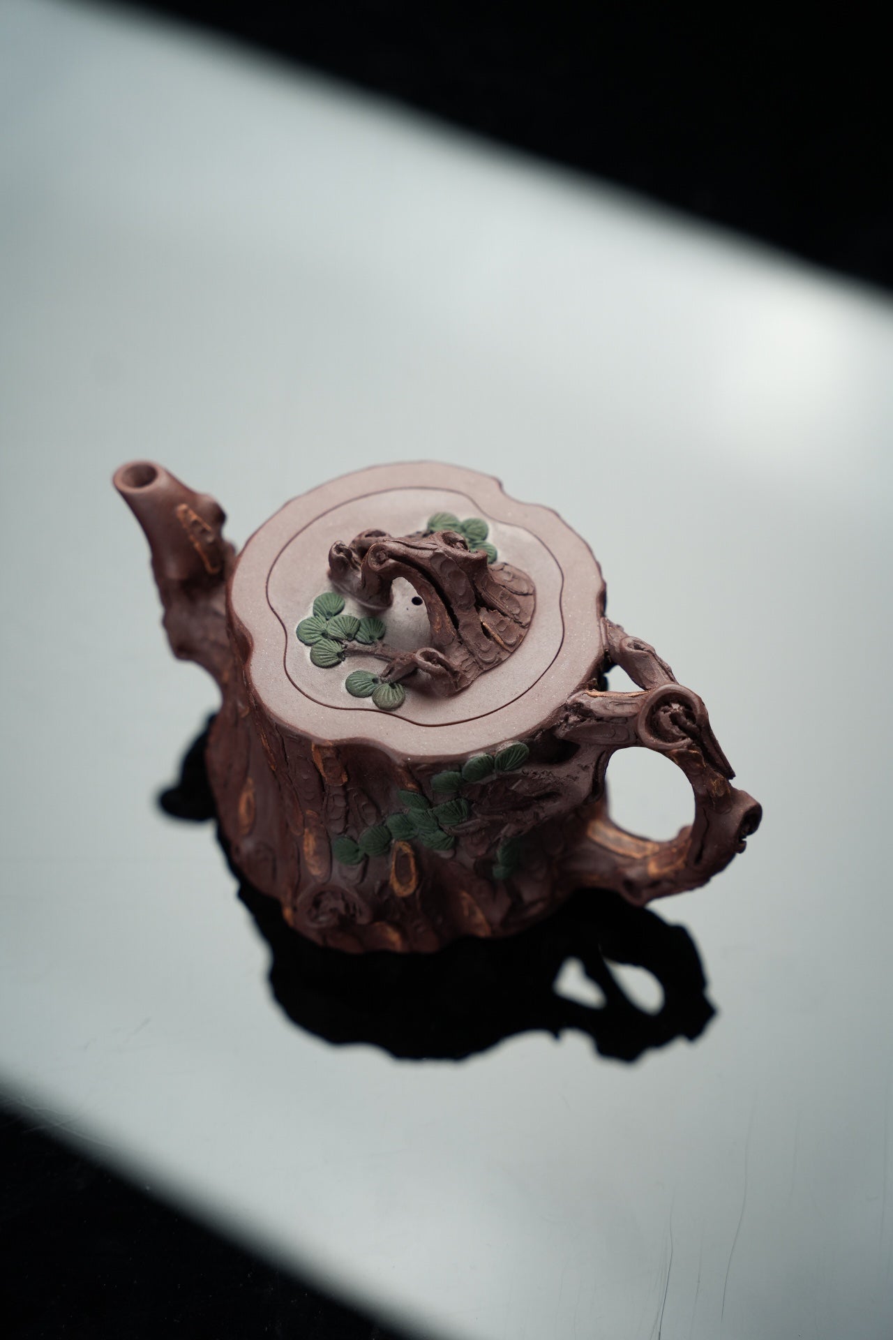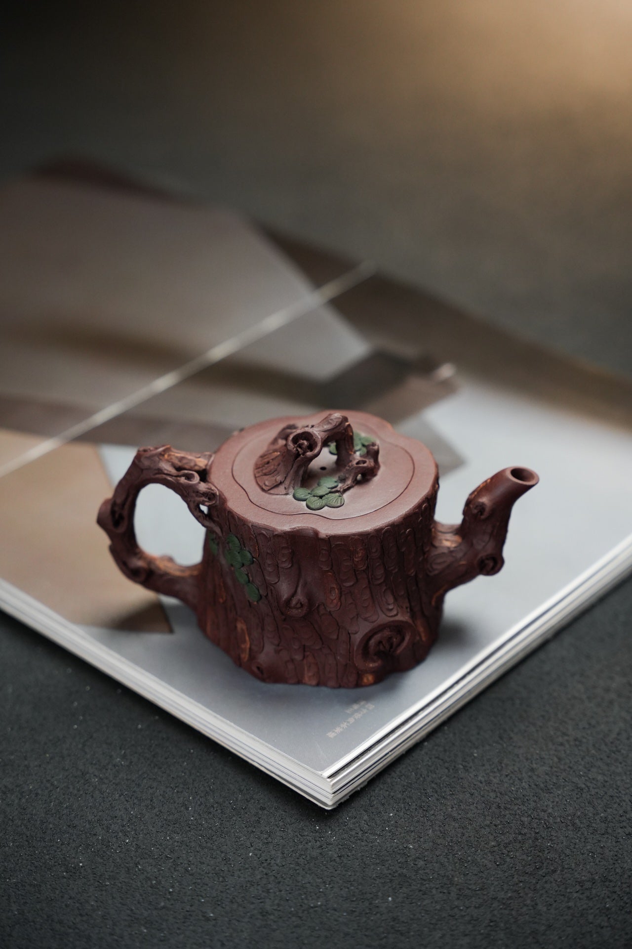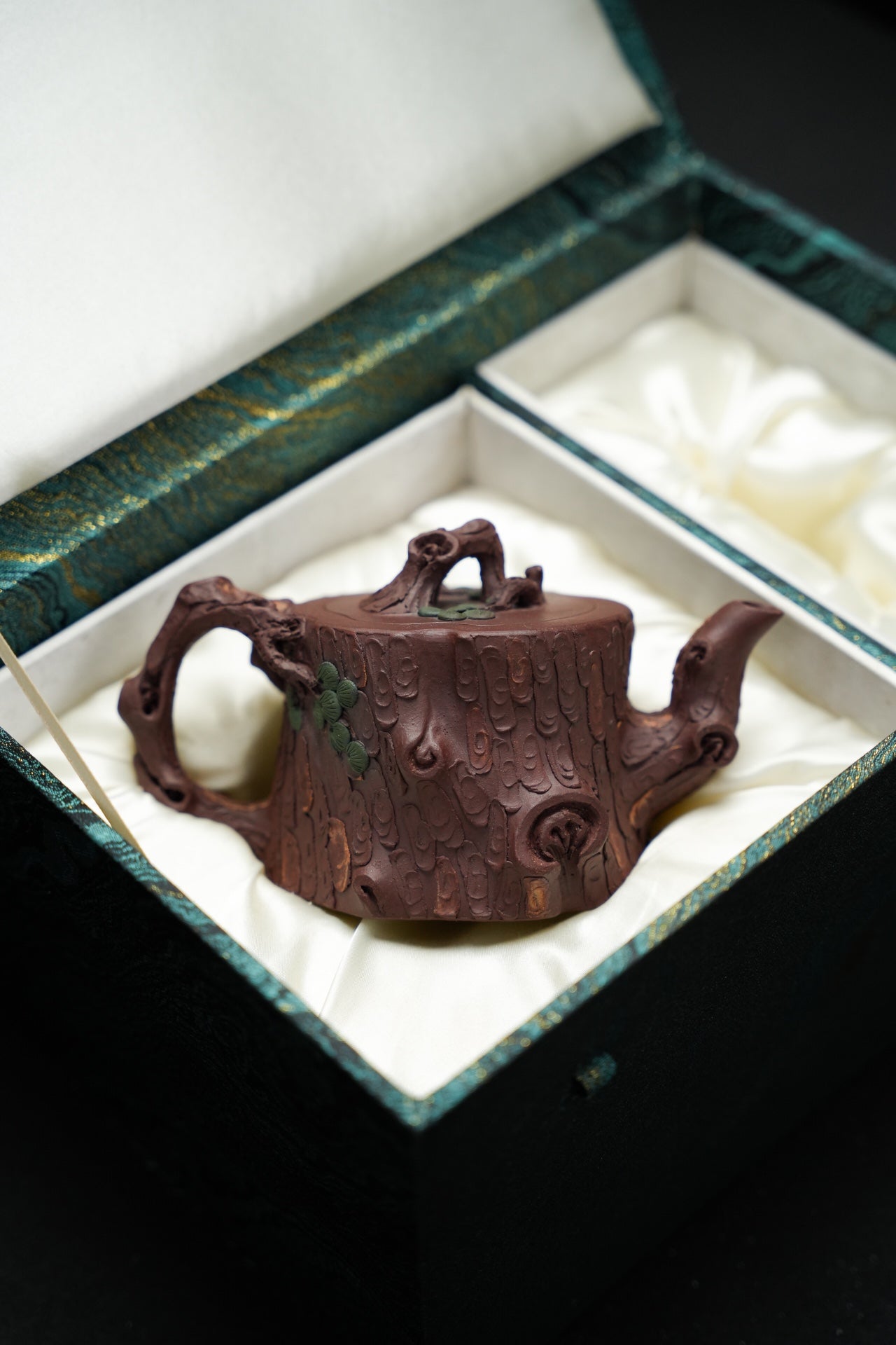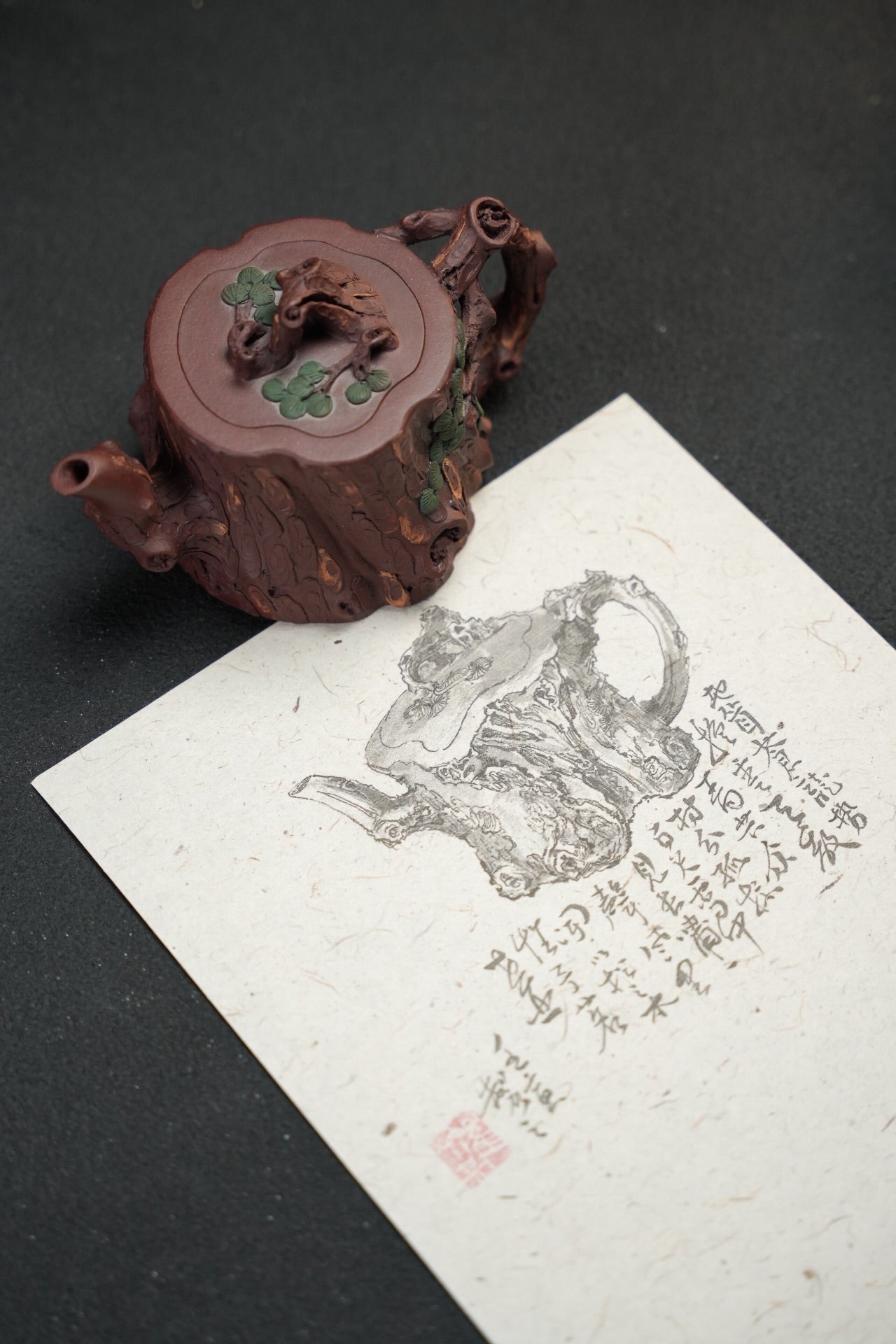 松桩套组·慕古·壶杯300/50cc 原矿优质紫泥 慕古润泽 以松树桩为形 树皮贴花更显工艺 嘴 钮 把 形体非常好 苍劲有力 非常灵动 有勃勃生机之感 斑驳嶙峋枝干 树瘿刻划精细入微 整体形态 庄重大气环境