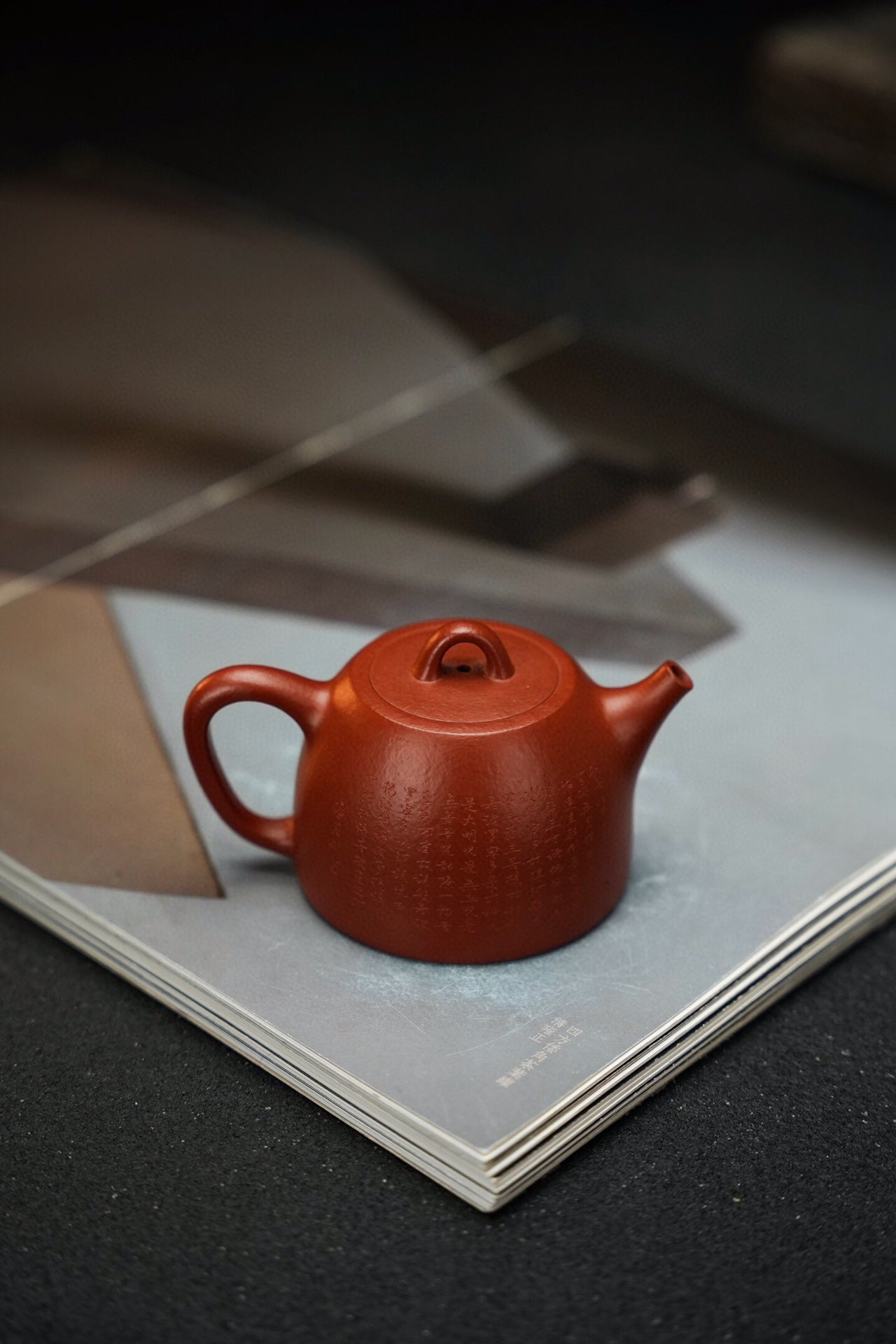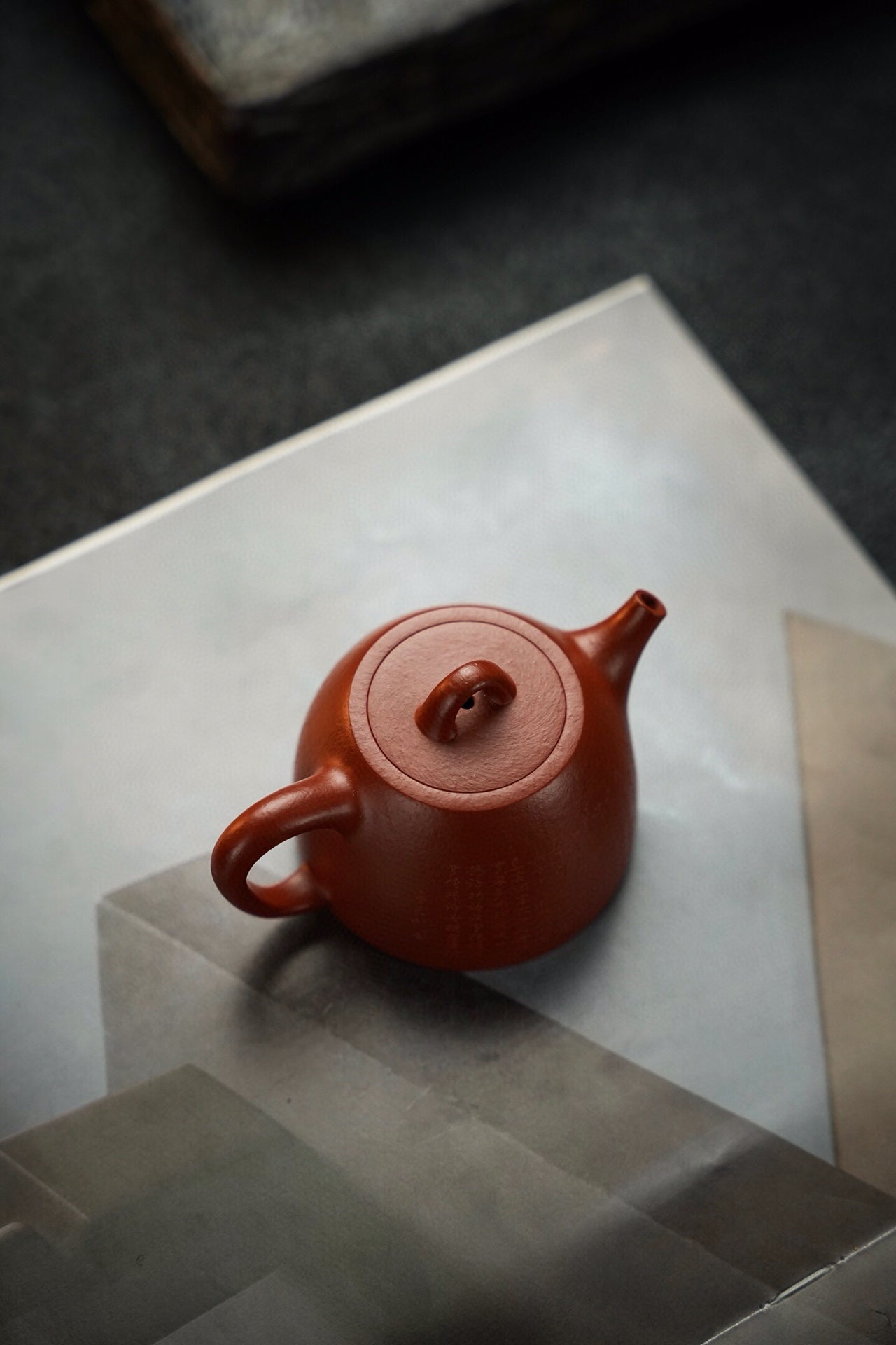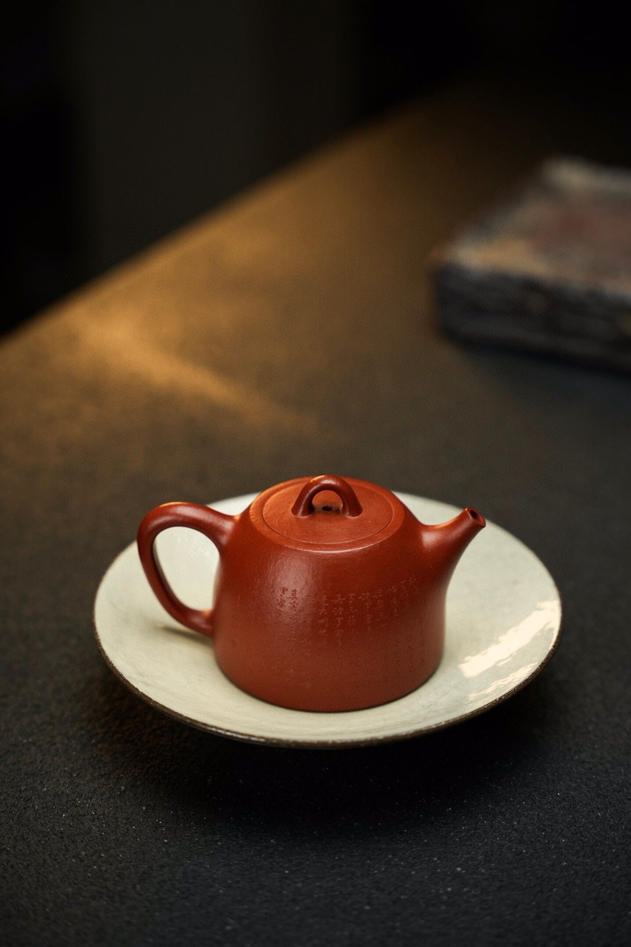 玉成汉铎·全手工·130cc 原矿30目粗砂朱泥 泥色油润 砂感丰富 上手效果好 堪堪一握 慕:玉成窑式汉铎 手工微刻心经优雅灵动 直嘴出水爽利
