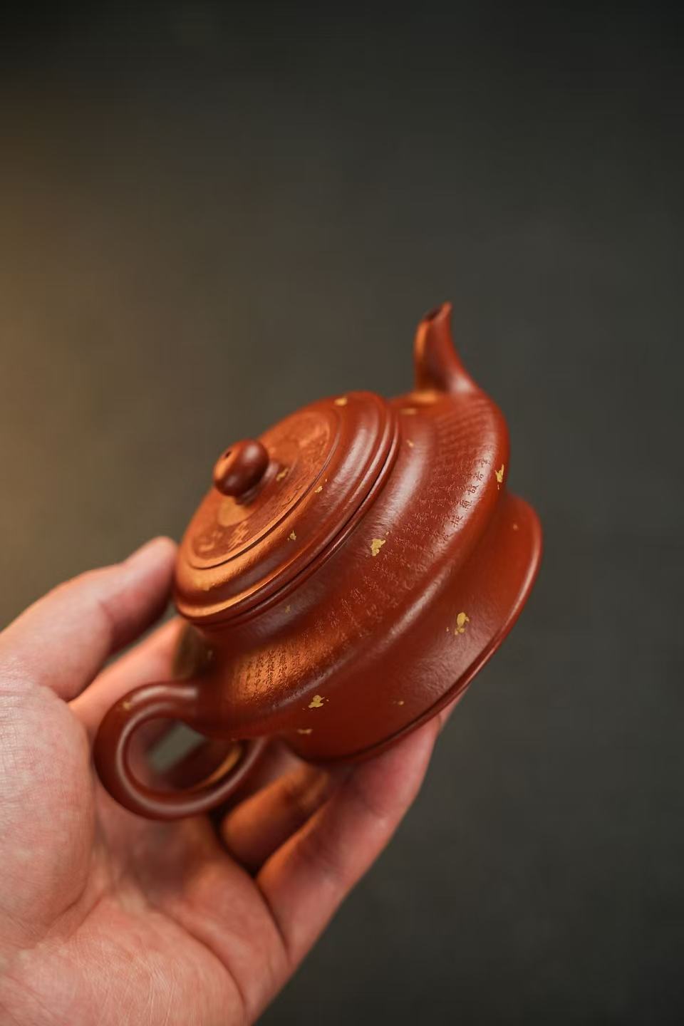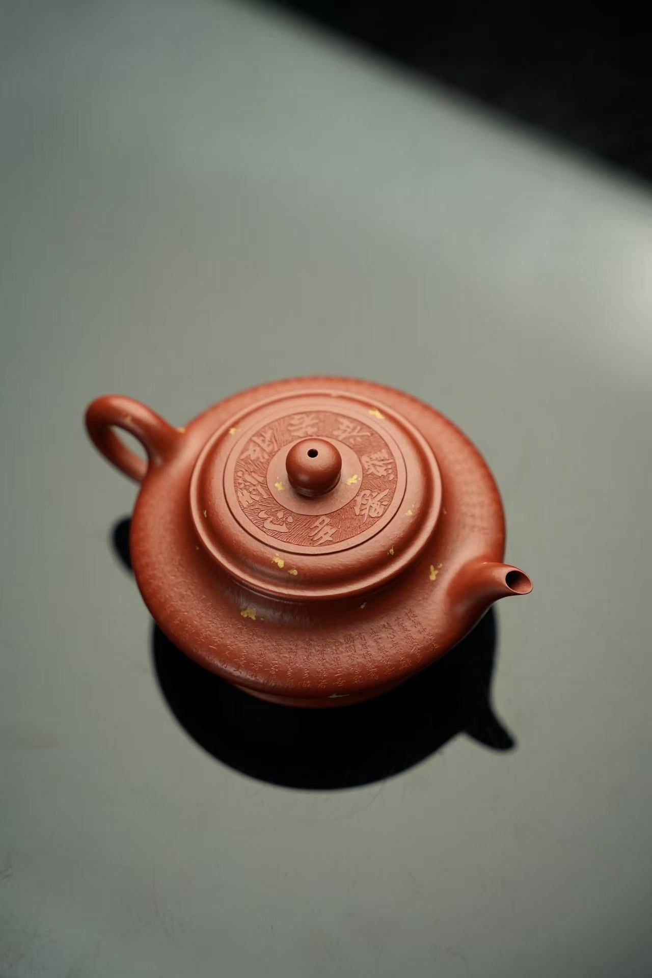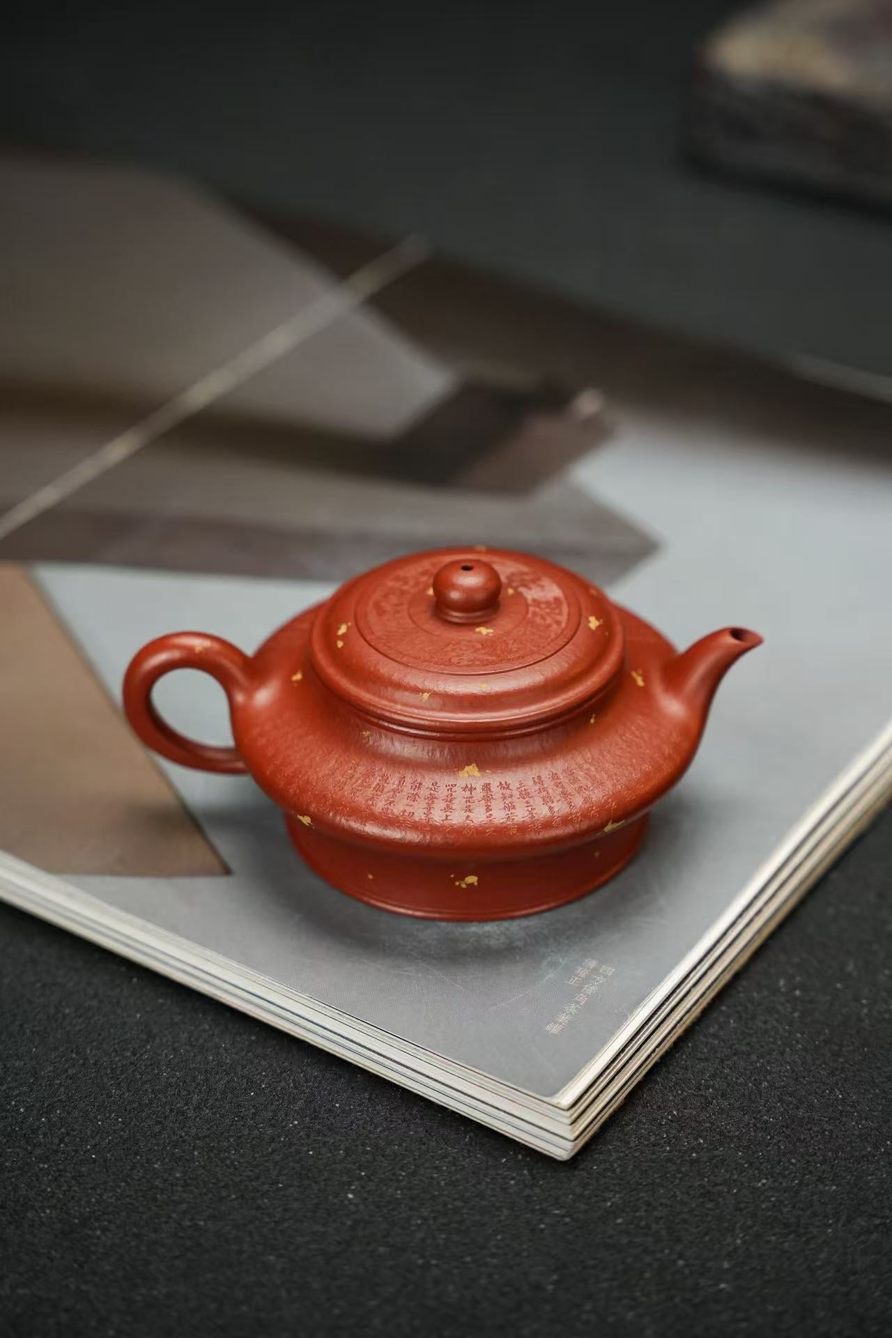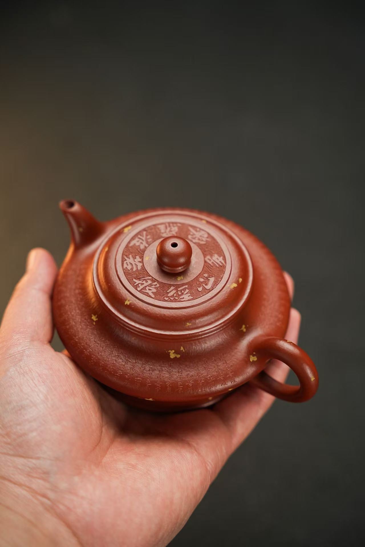 高虚扁·全手工·180CC 原矿30目粗砂朱泥 泥料正宗润泽 泡养后效果出彩[强] 手刻般若心经🙏 韵味十足 优雅大气 上手把玩效果出彩