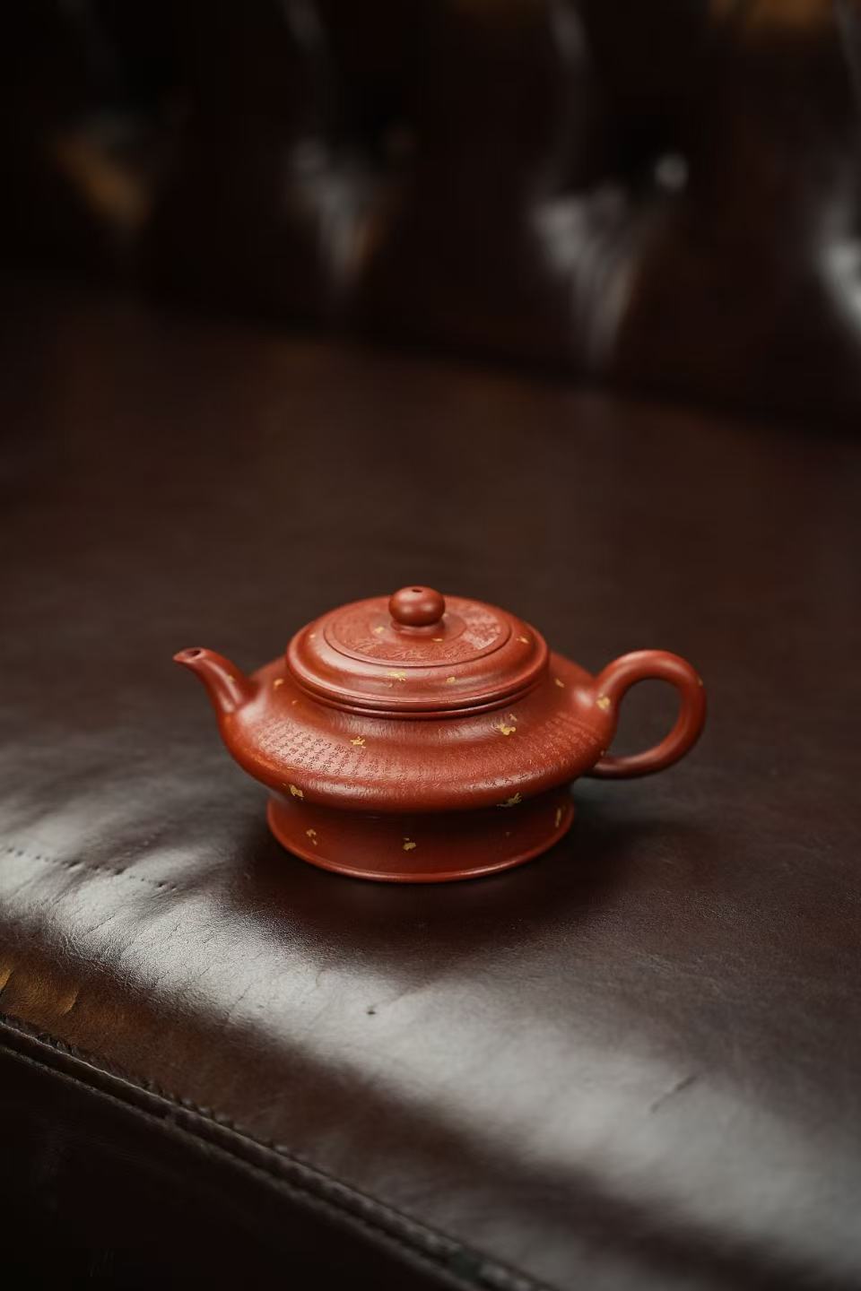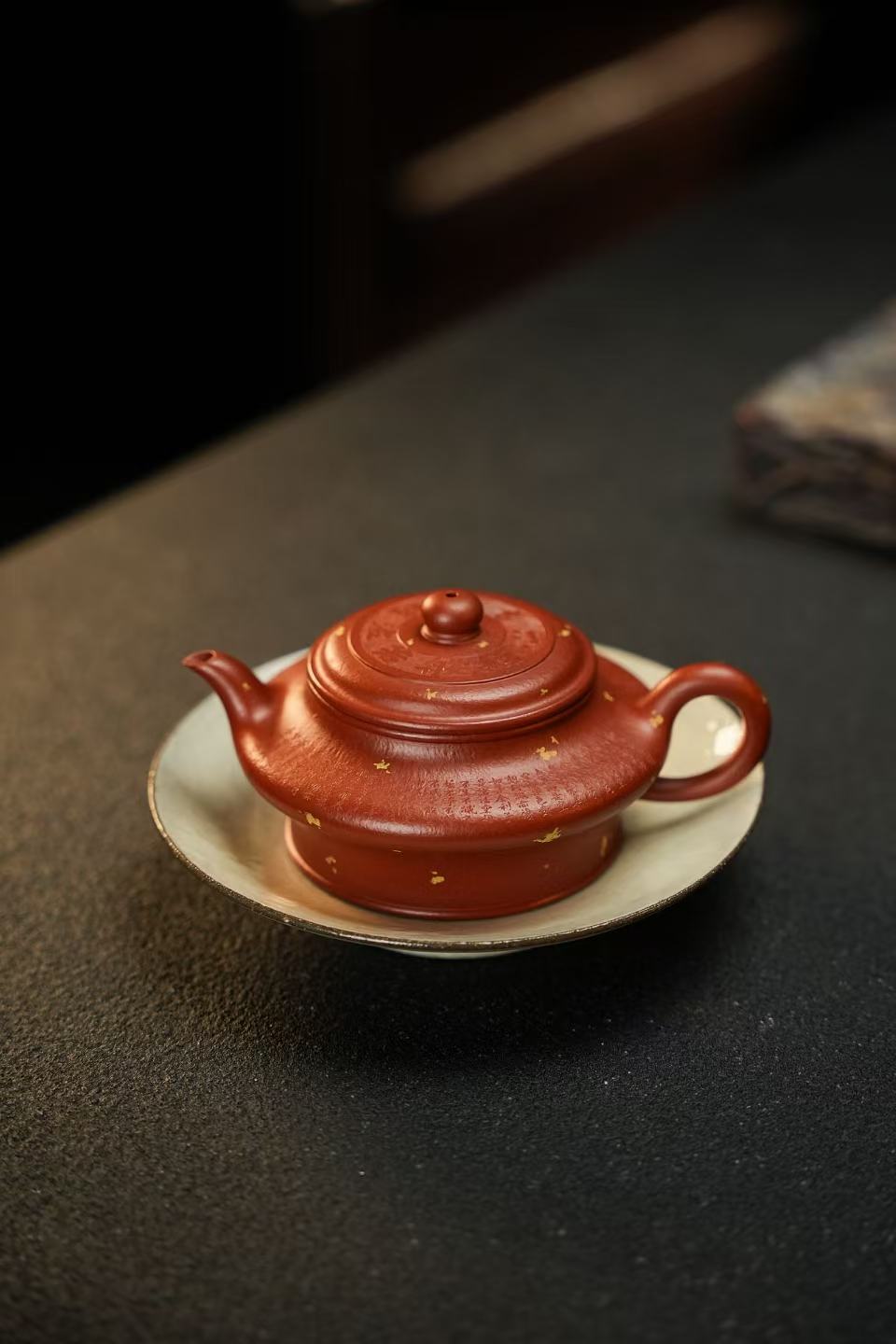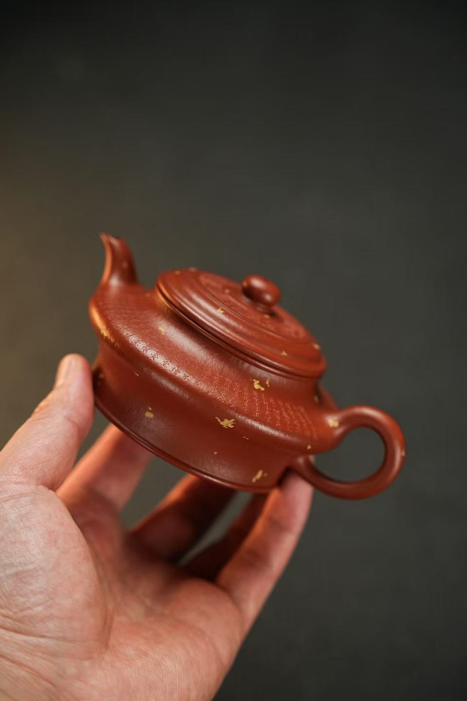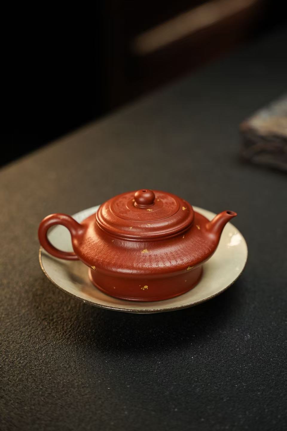 全手工原礦粗砂朱泥高虛扁紫砂壺「20250827每日特價」