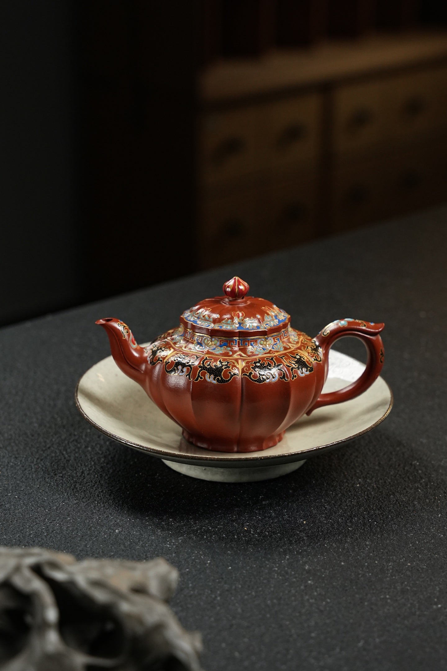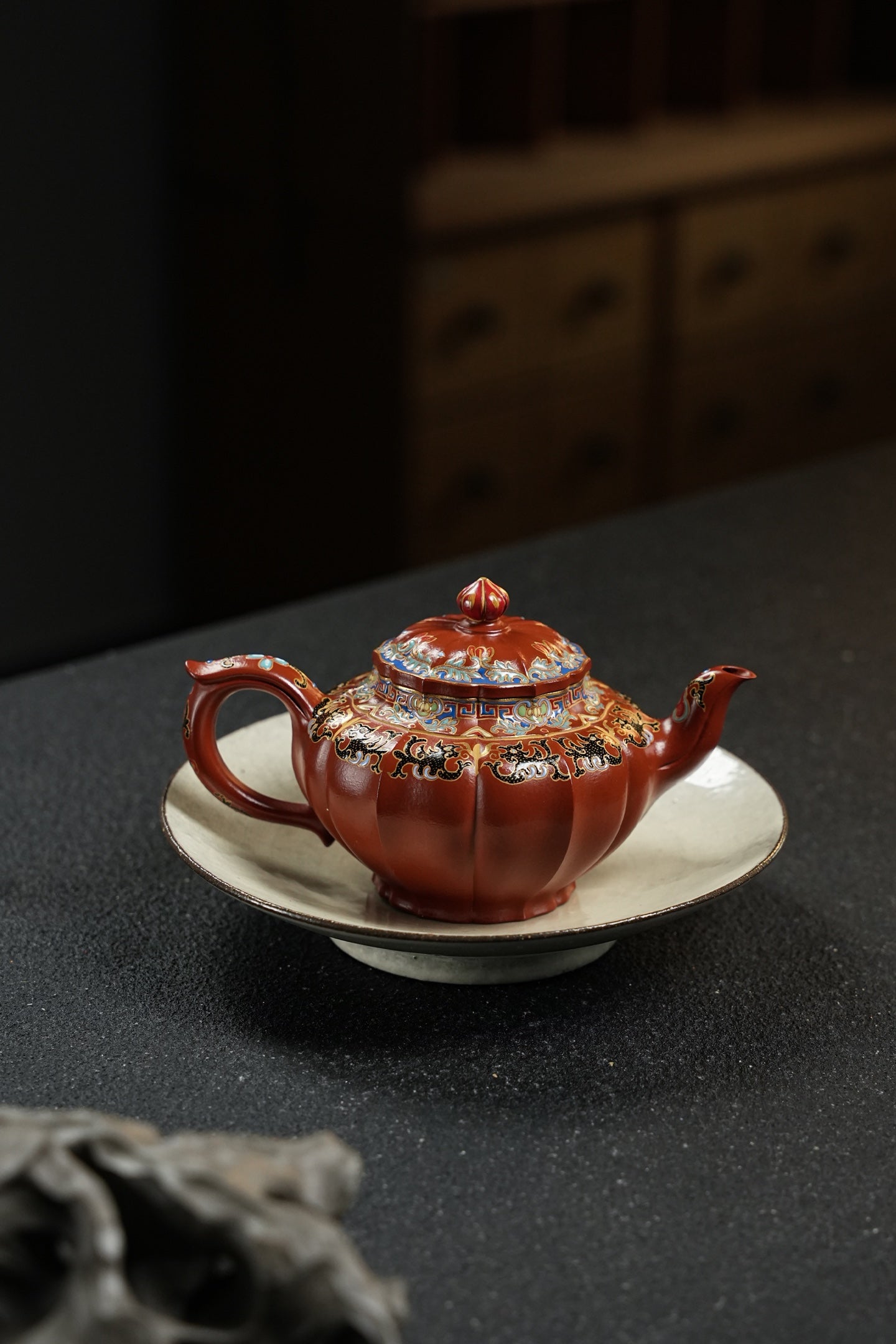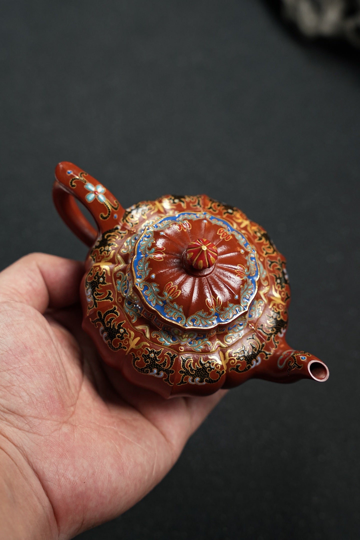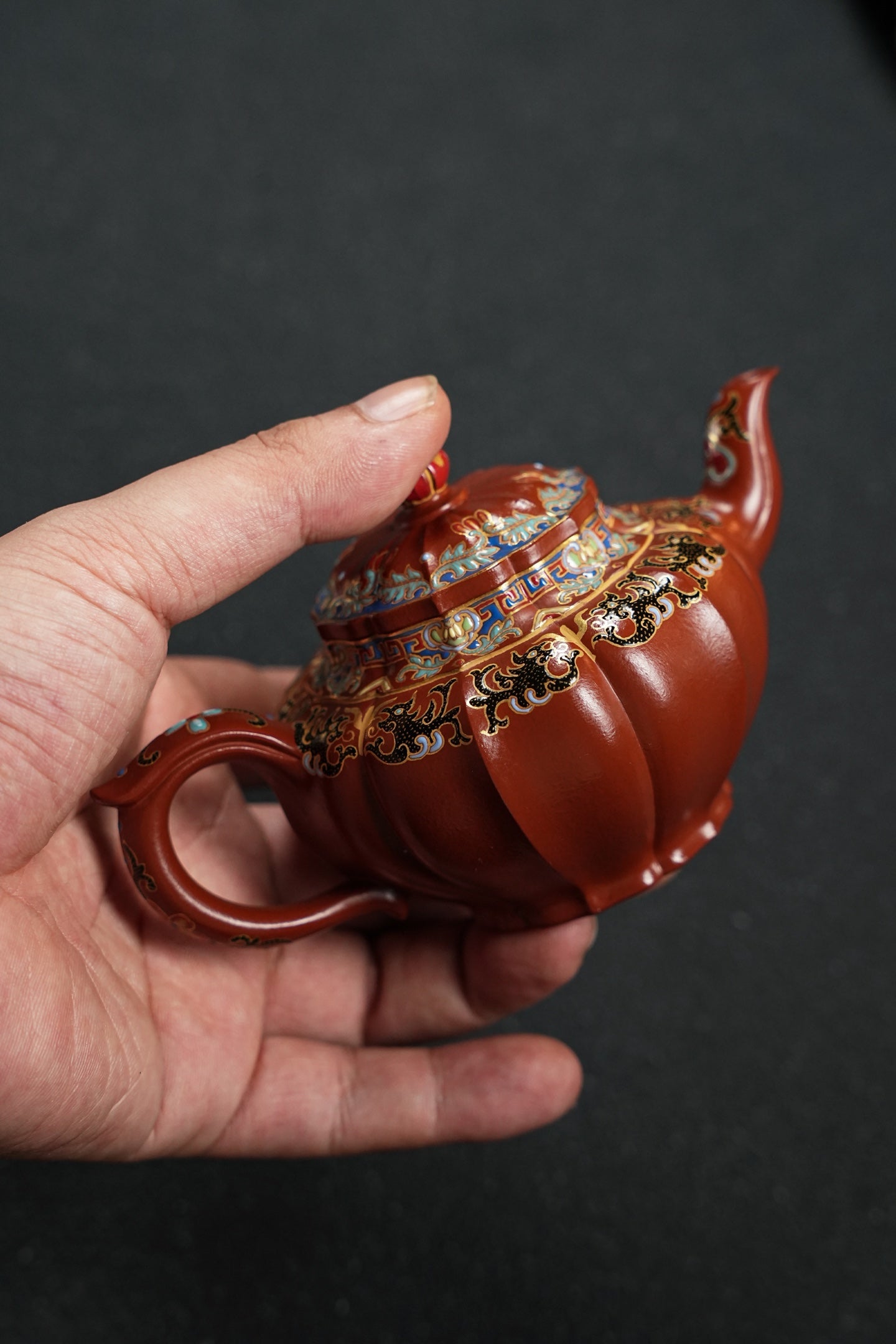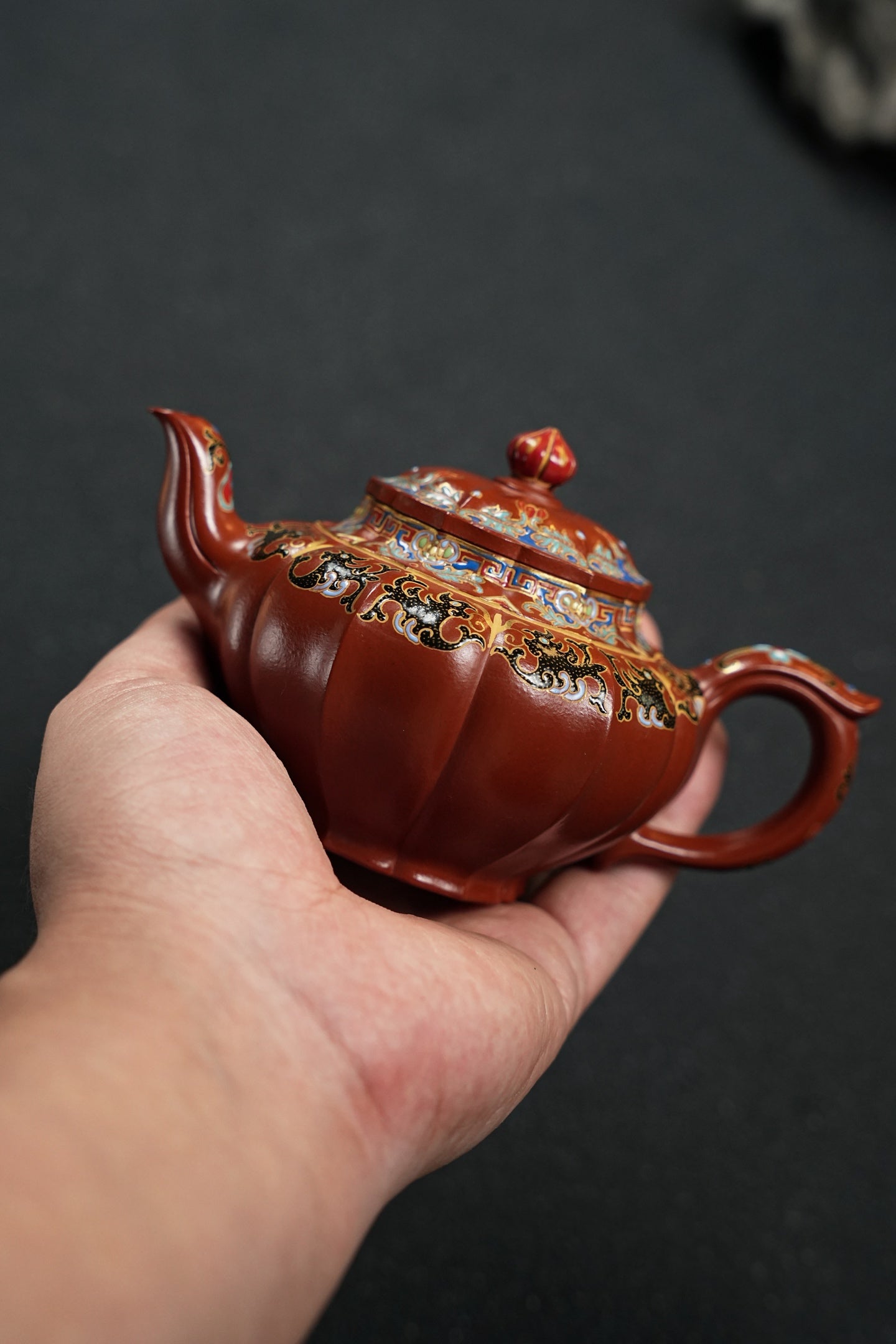 笑樱·筋纹精工·180cc 极品朱泥好料 全手工珐琅彩 型体经典 大气典雅 珐琅彩精细灵动 几何美感 堪堪一握 把玩出彩