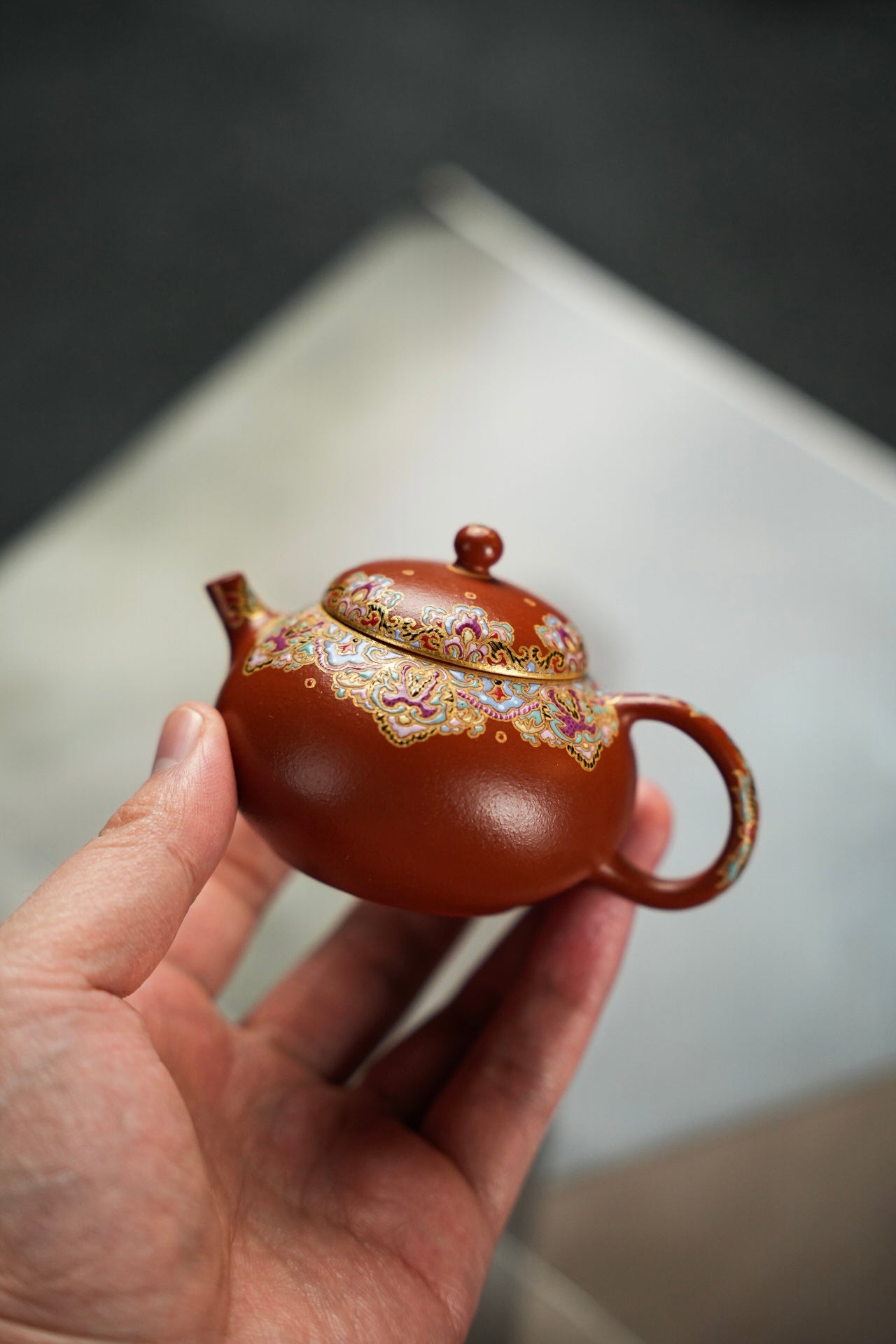 豆蔻·精工珐琅·100cc 原矿极品朱泥料 慕古润泽 型体经典 可爱雅致 手工珐琅彩 高雅华贵 堪堪一握 上手把玩出彩