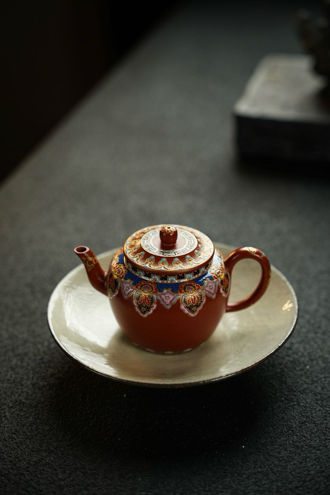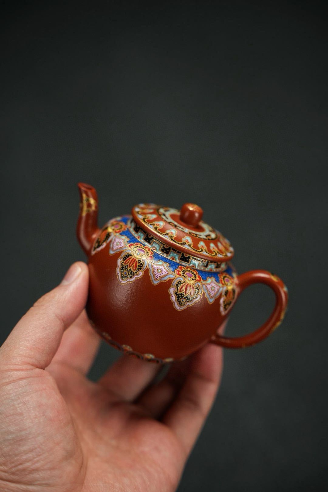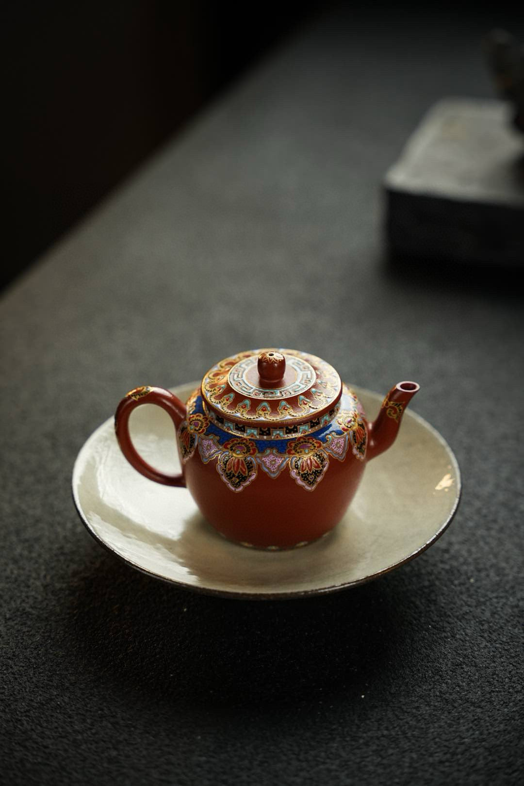 原礦極品朱泥料宮燈琺瑯彩紫砂壺「20250816每日特價」
