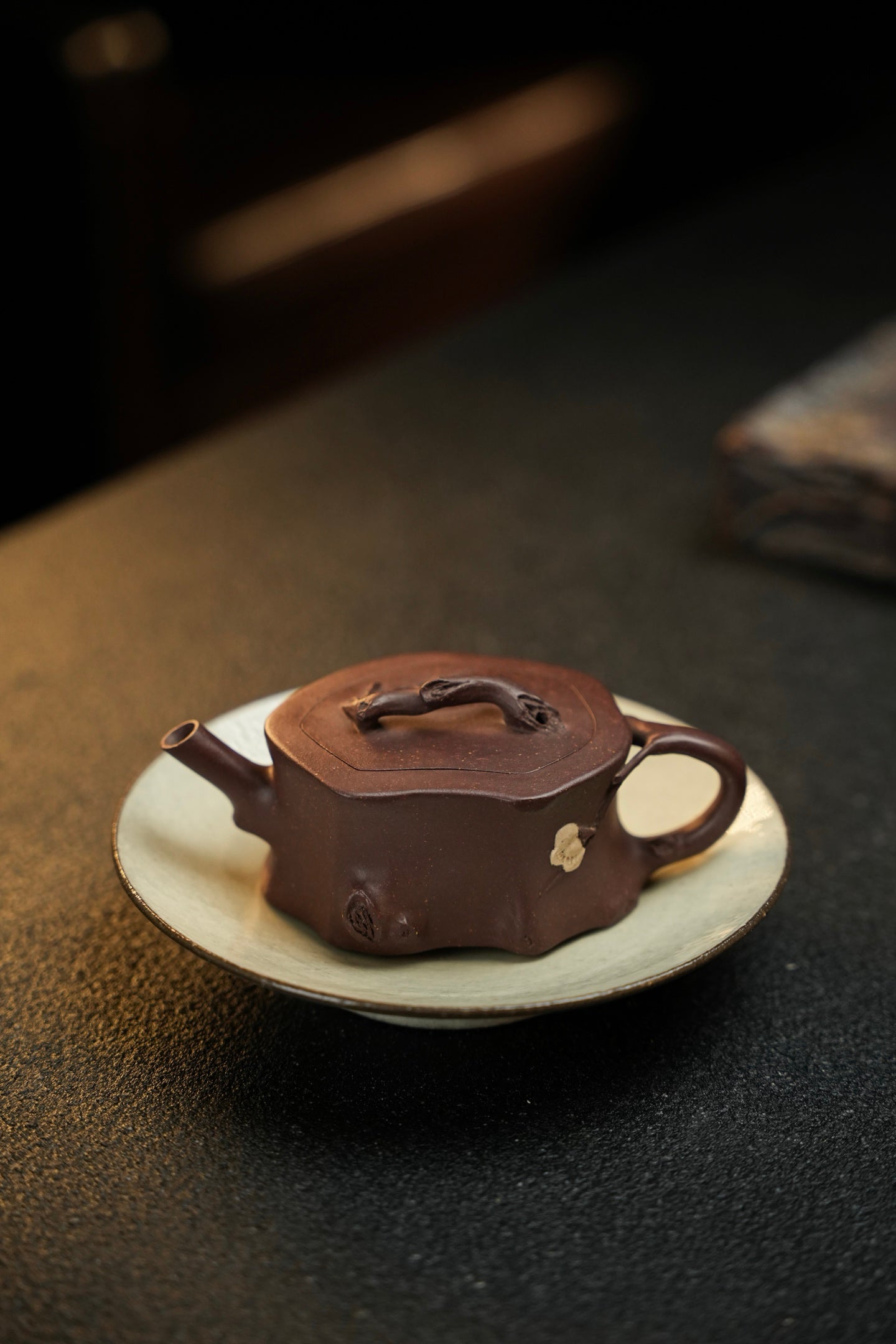 小梅桩·慕古·130cc 原矿老紫泥制作 色泽慕古 型体高雅 手贴白泥梅花灵动飘逸 构思巧妙 风格清新 别有一番风味