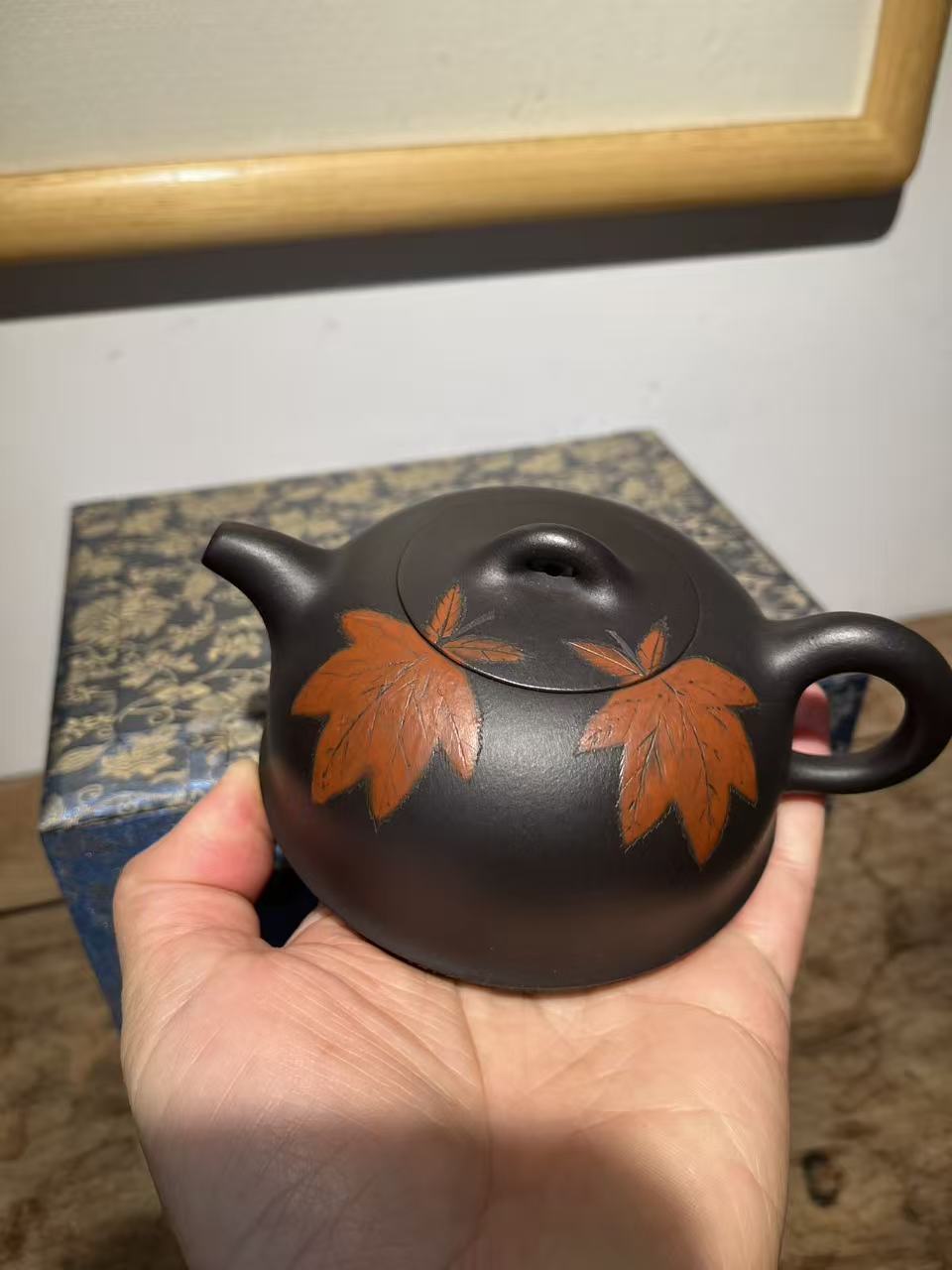 孤品一廠老黑泥楓葉壺「周春燕紫砂壺」
