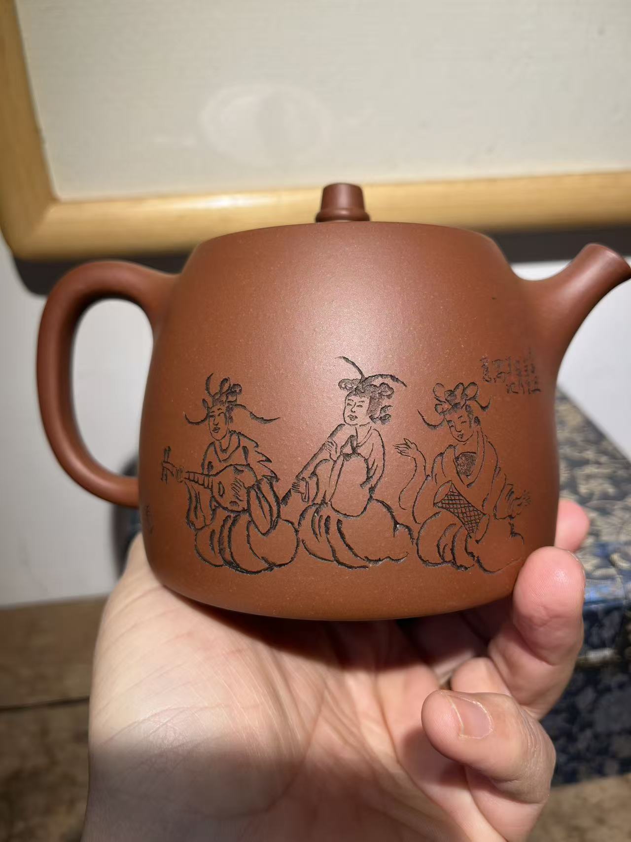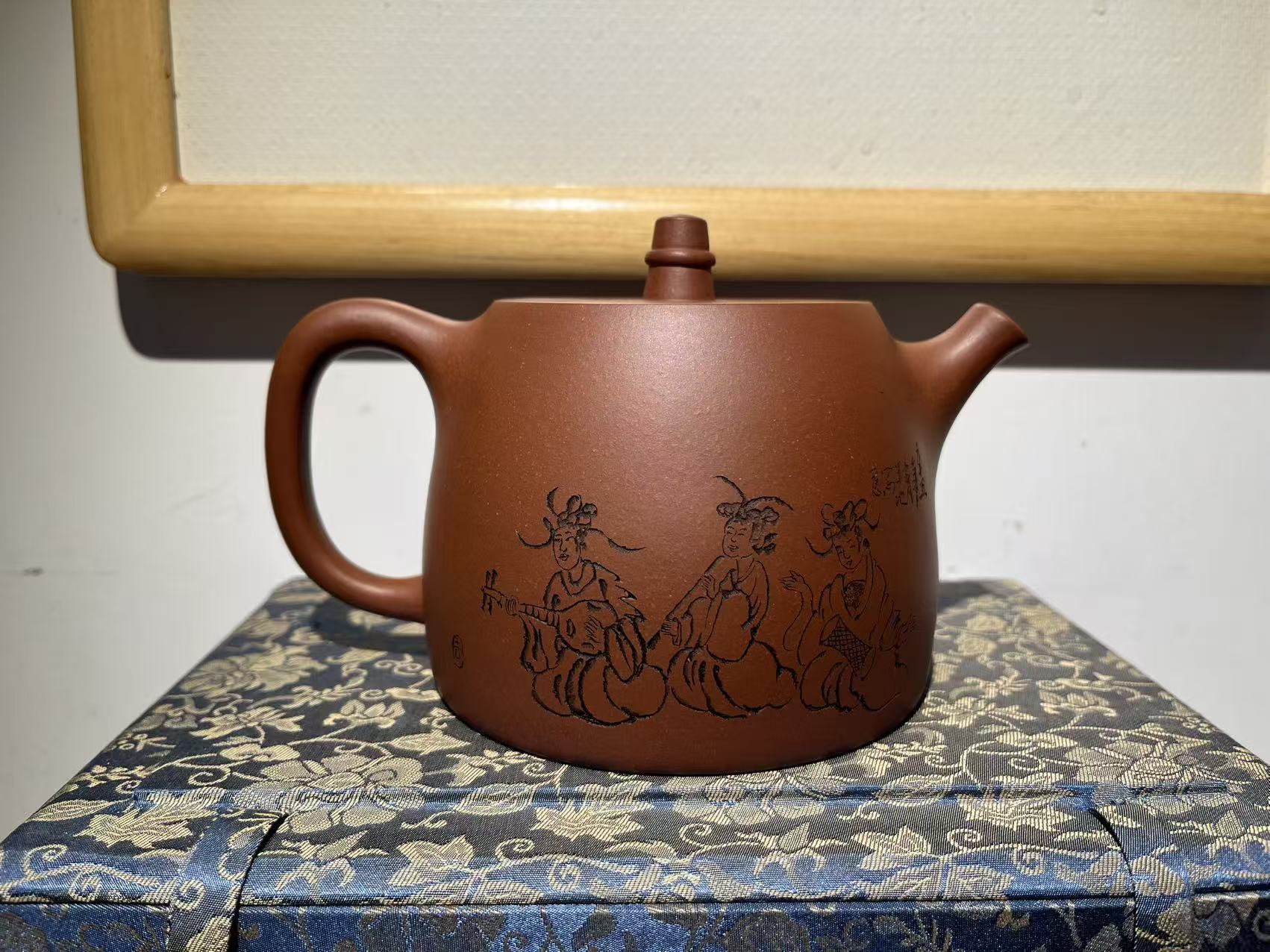 汉铎壶 原矿红皮龙 半池老师刻绘 容量530cc