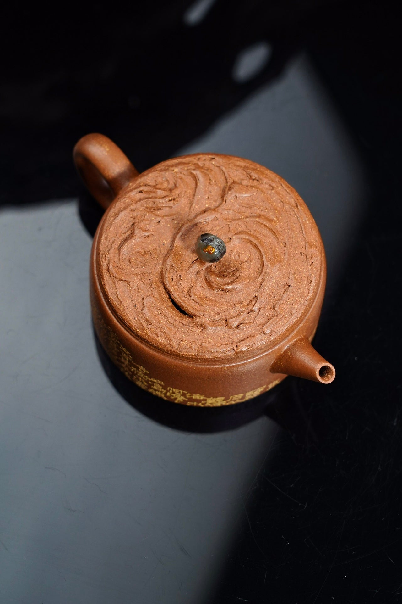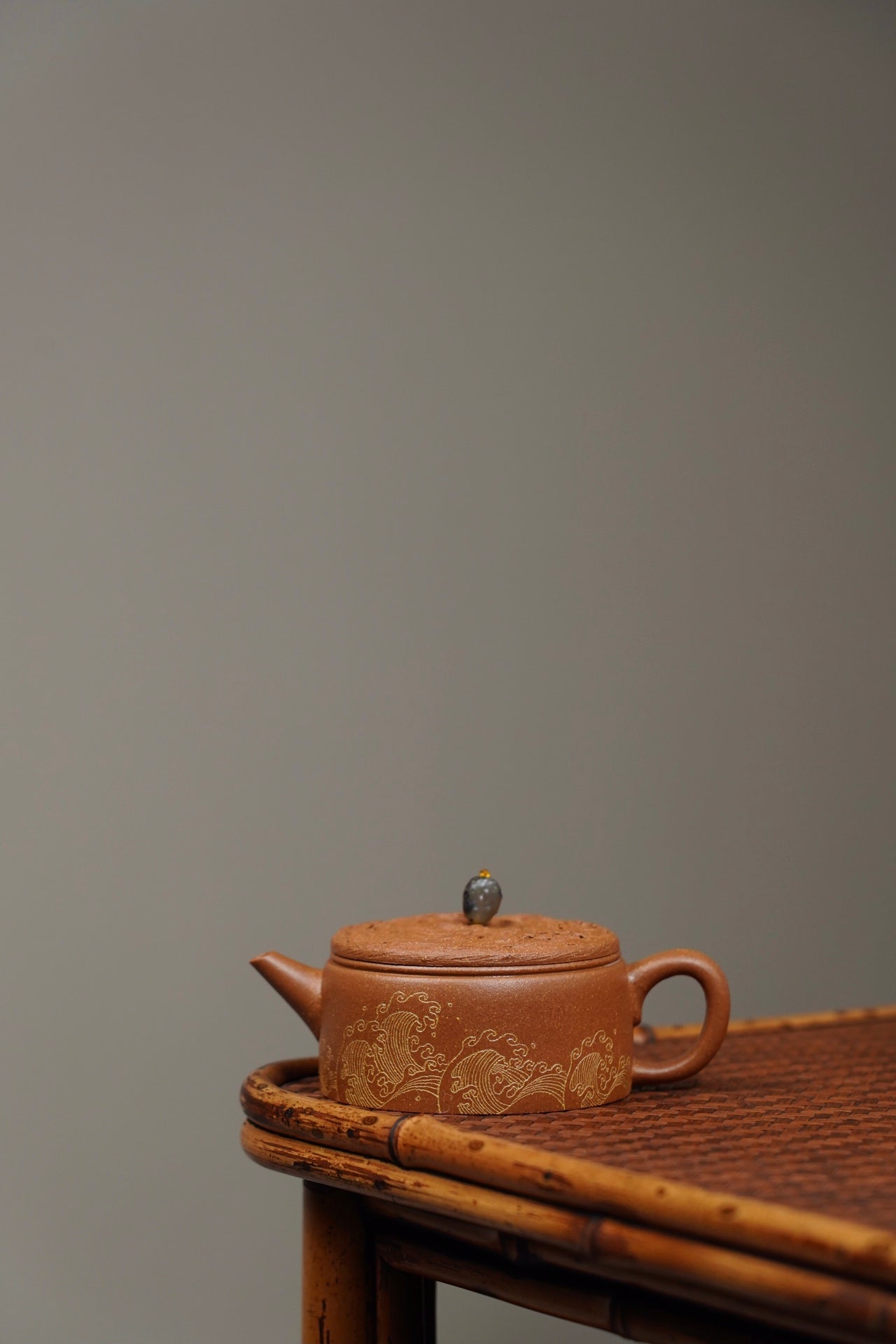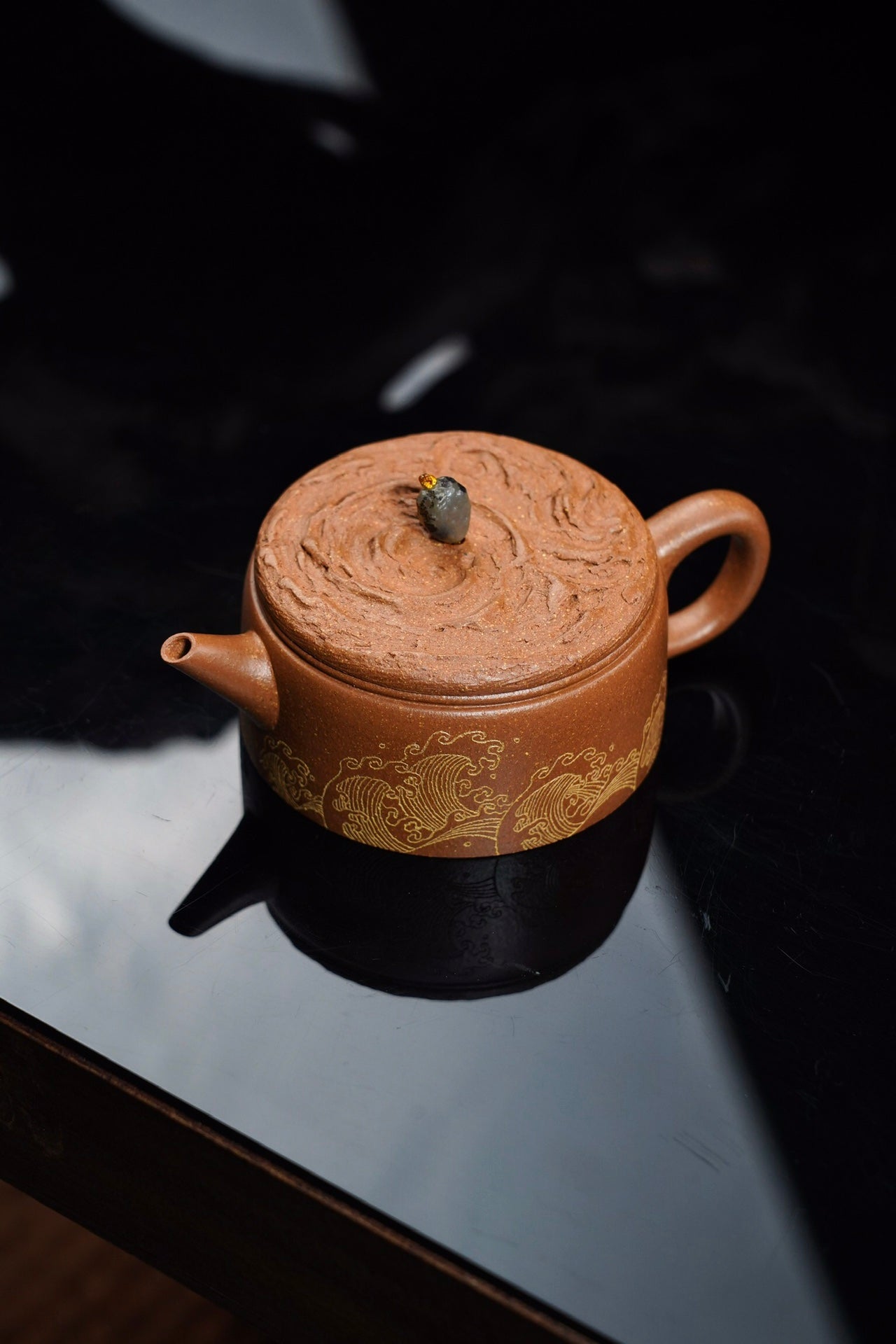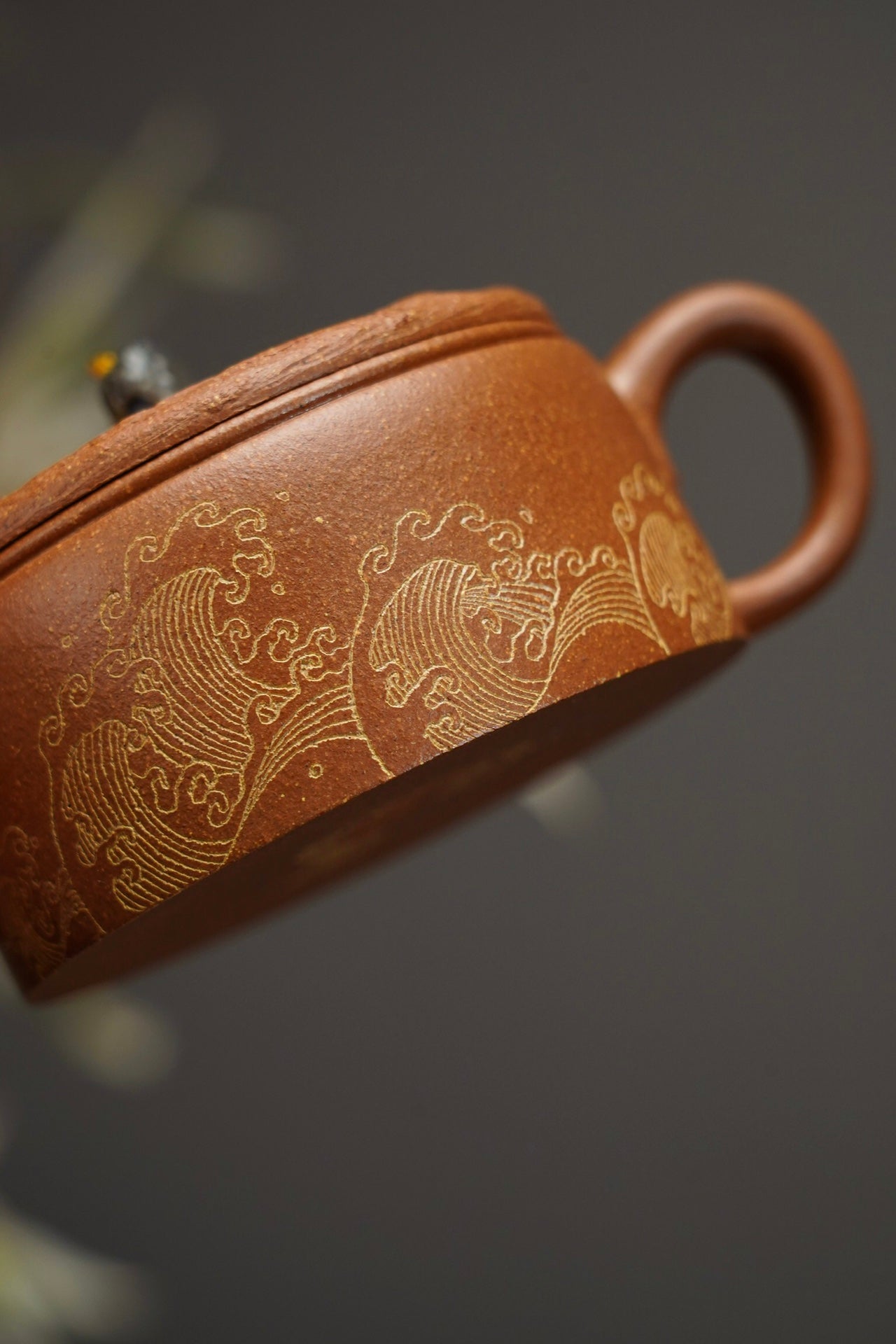 云纹汉瓦·设计款·120cc 陈腐原矿降坡 慕古润泽 壶盖仿制云纹浑穆灵动 宝石钮设计出彩 刻绘“观沧海” 波涛起伏 韵味十足
