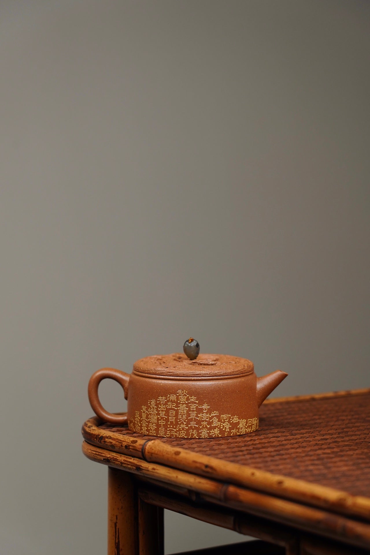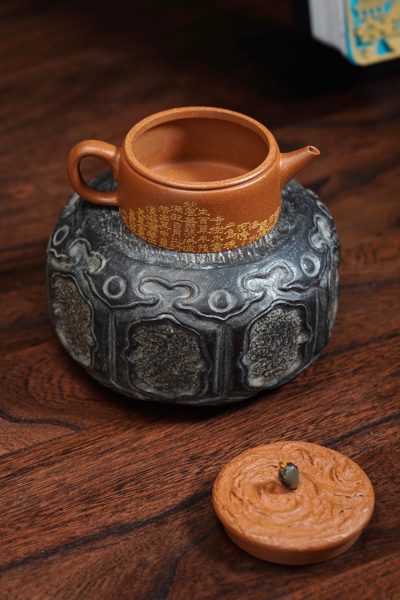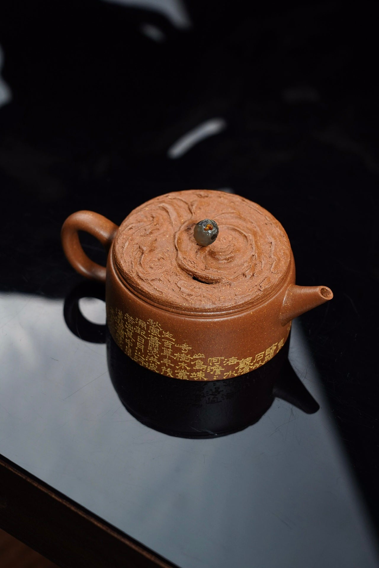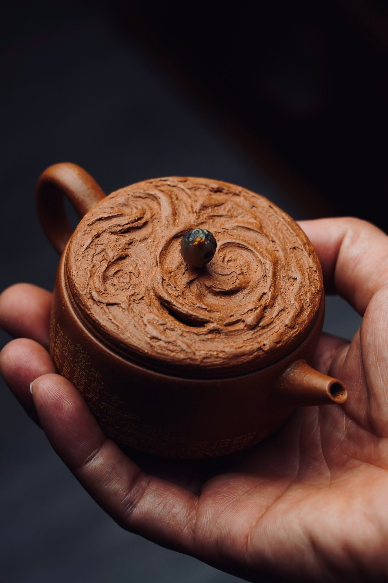 云纹汉瓦·设计款·120cc 陈腐原矿降坡 慕古润泽 壶盖仿制云纹浑穆灵动 宝石钮设计出彩 刻绘“观沧海” 波涛起伏 韵味十足