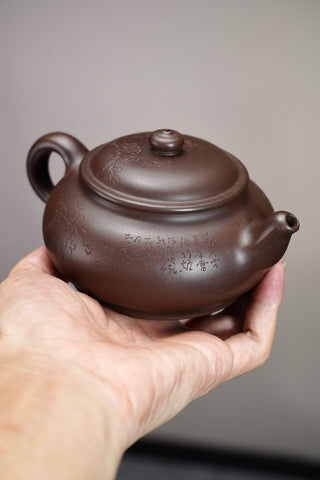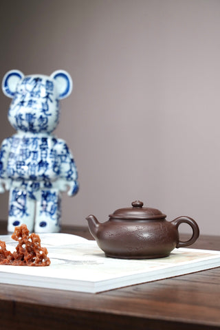 自此我開始不做他想,只單單向石破天購買紫砂壺。我向吳老師購買紫砂壺,其實過程是十分不易的,不像在國內的朋友們那樣幸福。每次購買需要先找到國內願意墊付壺款的朋友,再委請我們這兒的朋友,給國內的朋友打錢,而更麻煩的是寄送問題,有時輾轉請國內朋友帶出來,有時寄至臺灣,待我們回鄉時再攜來本地。雖是如此不易,我還是非常珍惜每次購買紫砂的機會,還有每次收到漂洋過海而來的紫砂壺的驚喜。去年回鄉一年,今年再次到海外生活,因為可攜行李有限,一把壺也沒能跟著我們,因此著急向吳老師選購一壺。然而疫情的關係,兩地斷航無法寄送,我遂建議吳老師嘗試走國際快遞,壺是安全收到了,也非常喜愛,運費卻奇高無比,我估計這筆買賣肯定使吳老師有所虧損,我向他表達歉意,他卻只淡淡地說『沒事,以後儘量還是走順豐』。誰做生意不為了賺錢呢,然而,看中他一直以來是一位豪爽、大器與重信諾的商界文人,深值我信賴。