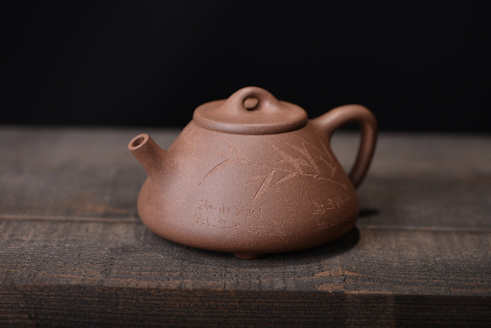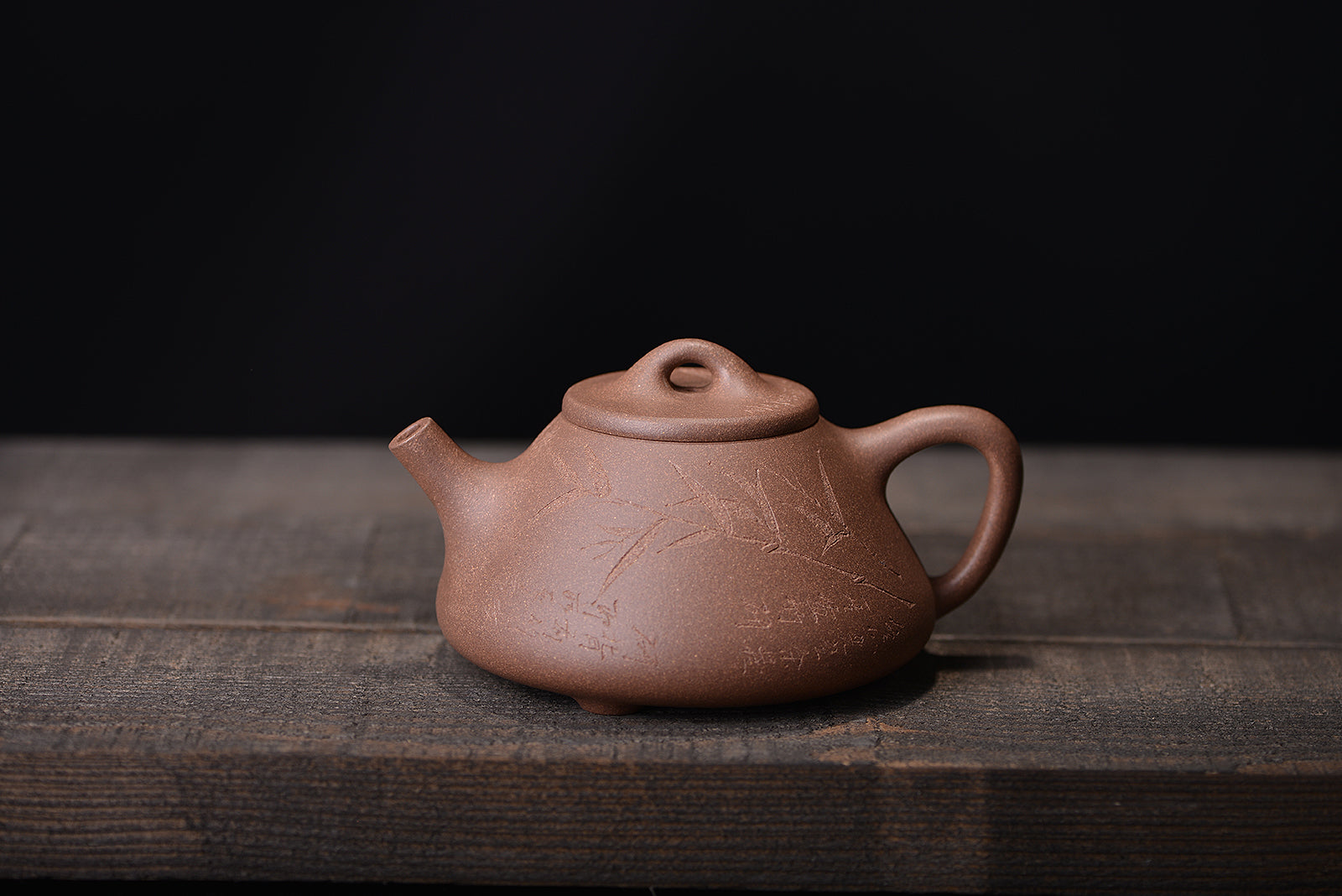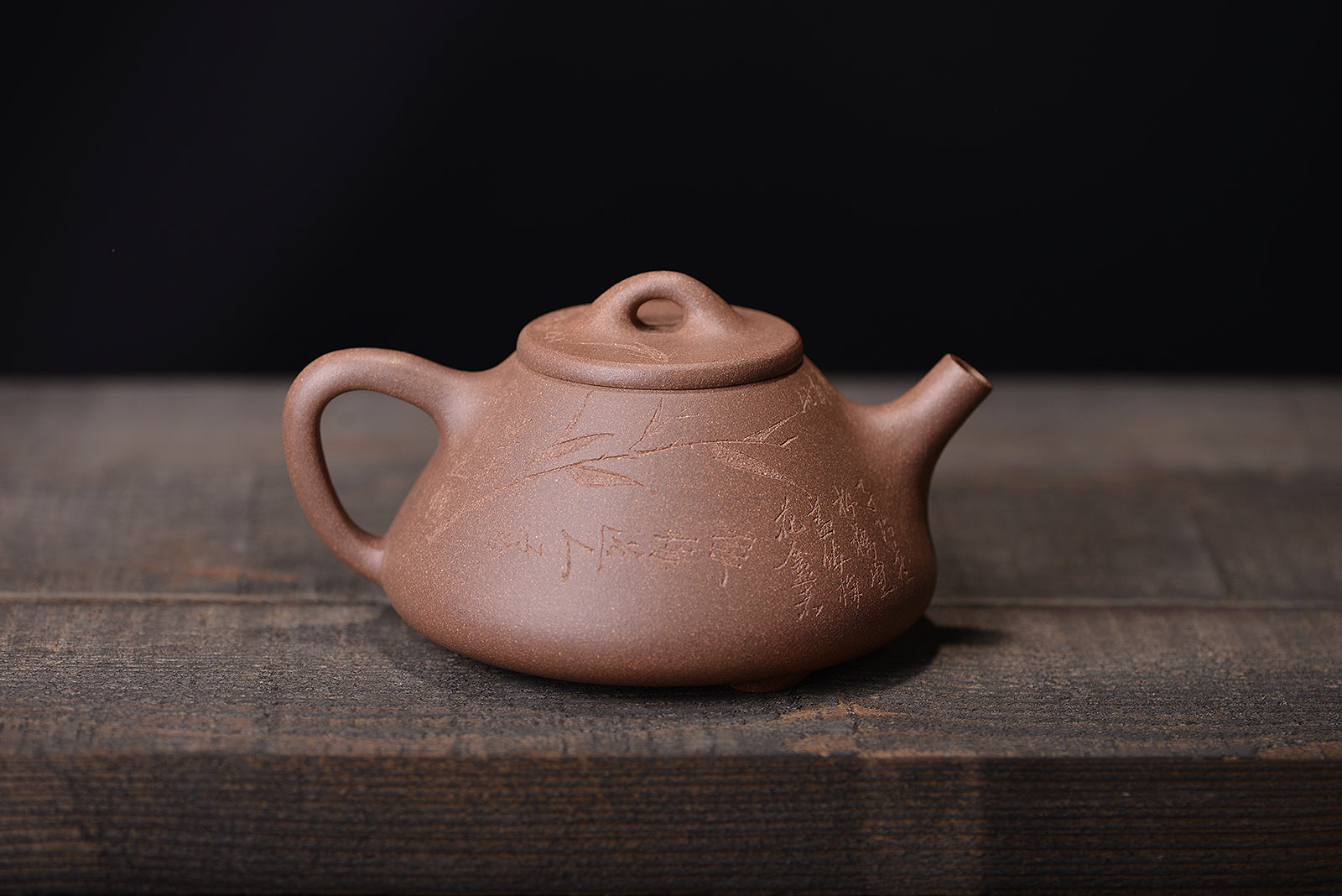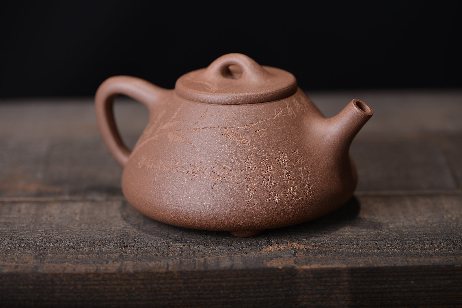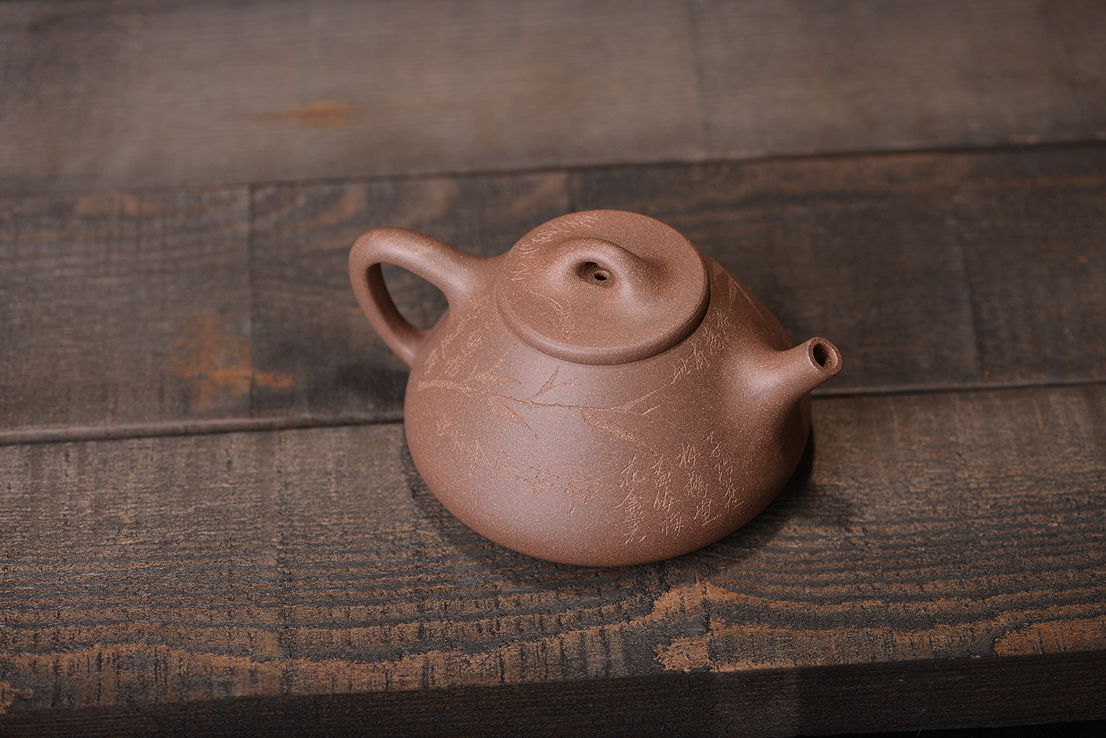 明清老段泥刻绘子冶石瓢紫砂壶
